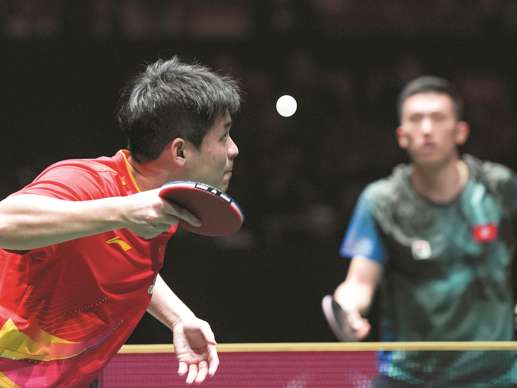 11月30日,在四川成都举行的2025年国际乒联混合团体世界杯第一阶段A组小组赛中,中国队总比分8比1战胜中国香港队。 ▼图为当日,中国队选手林诗栋在男单比赛中。最终他3比0战胜中国香港队选手林兆恒。 新华社记者 王 曦摄