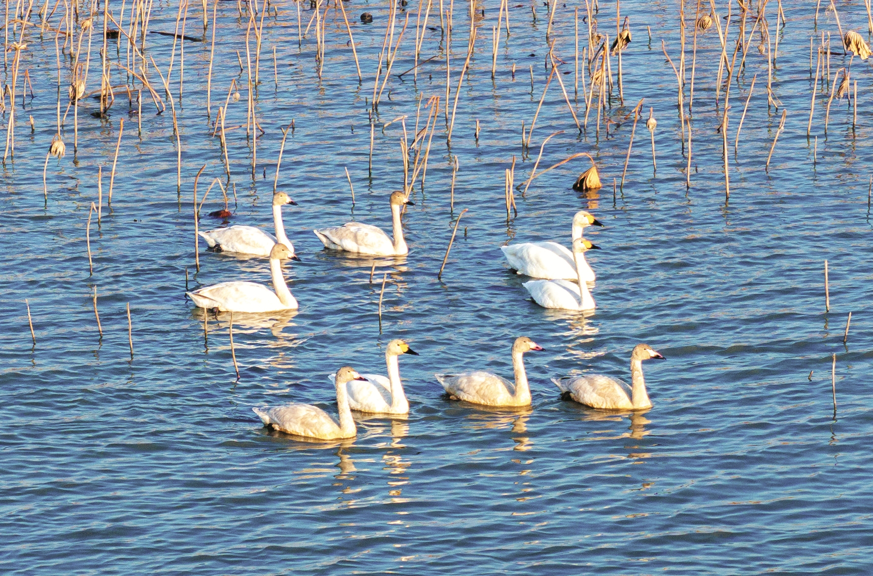 ?图为12月1日,群鸟在江苏兴化里下河国家湿地公园内栖息(无人机照片)。