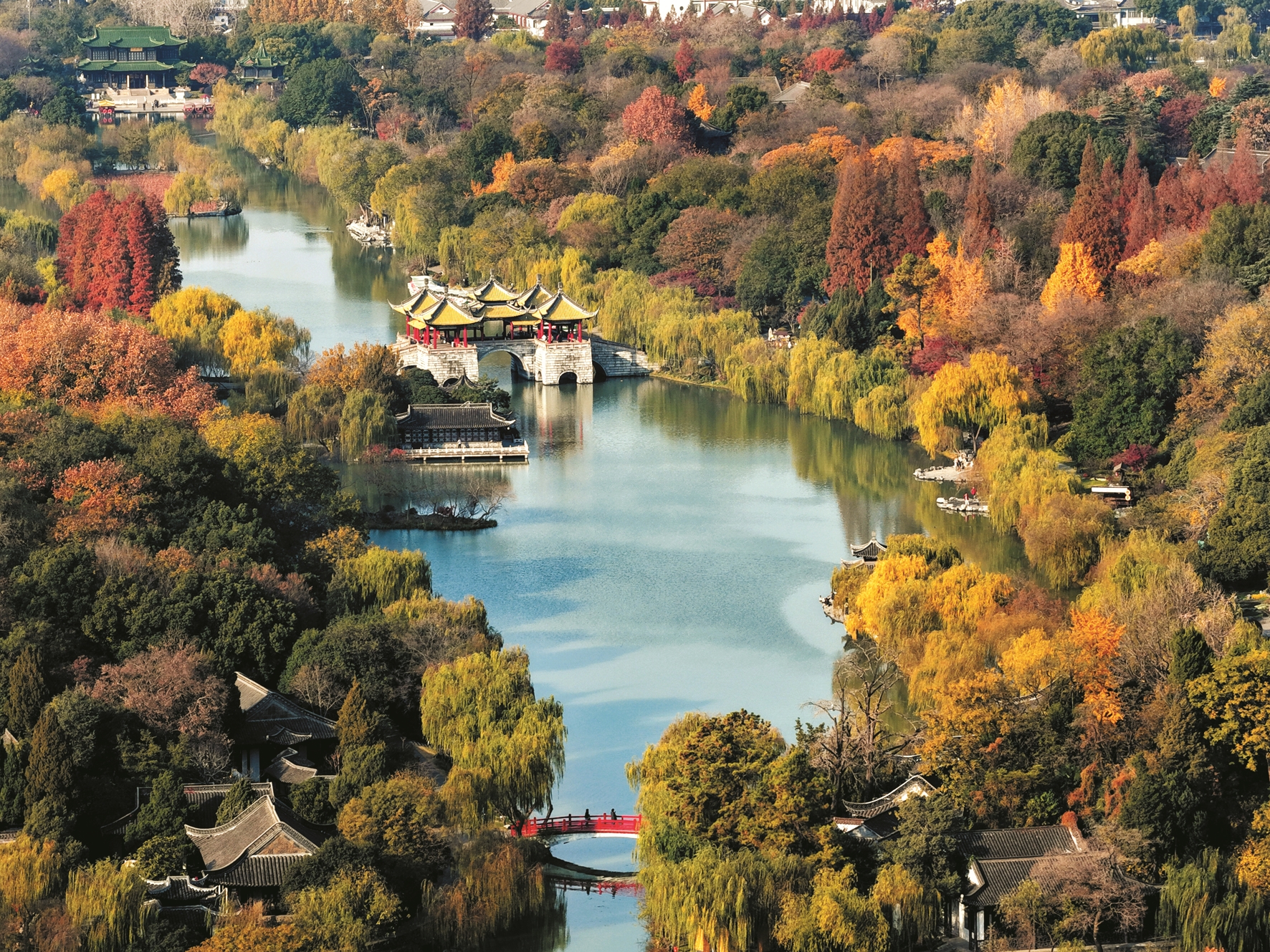 ▲12月5日拍摄的江苏扬州瘦西湖风景区一景(无人机照片)。 (新华社发)