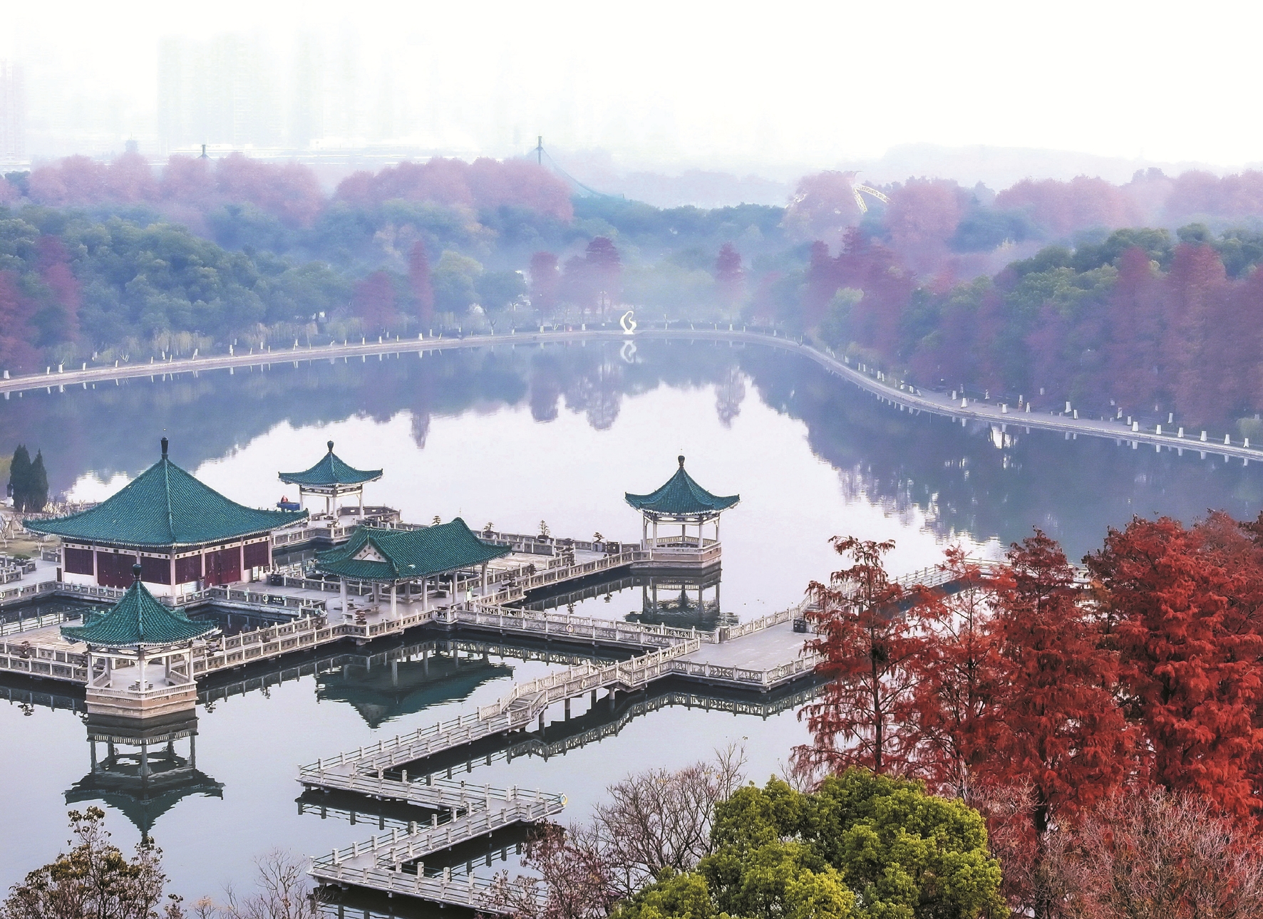 ▲12月6日在湖北省武汉市东湖听涛景区拍摄的冬日景色(无人机照片)。 (新华社发)