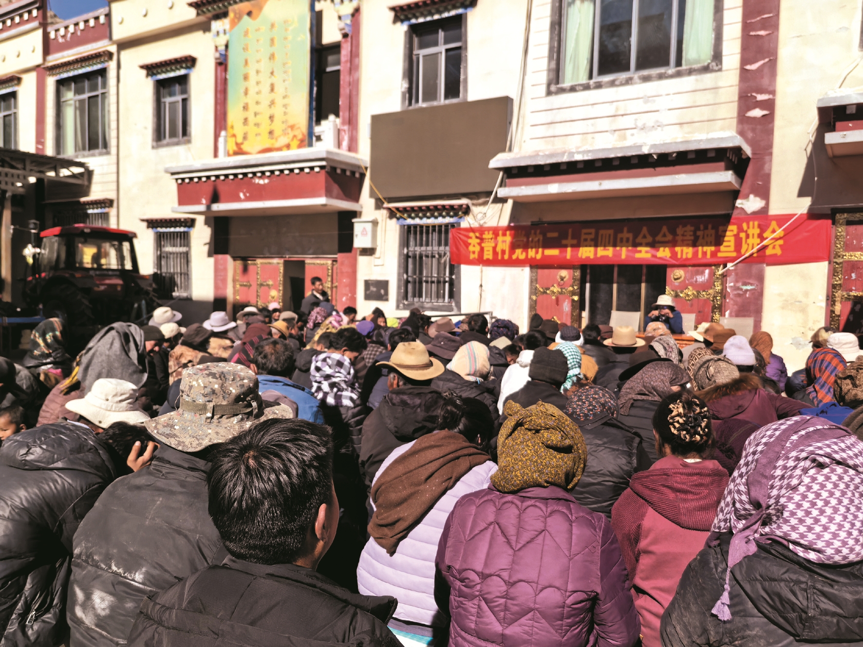 图为宣讲会现场,吞普村村民集中聆听宣讲。拉萨融媒记者 齐永昌摄