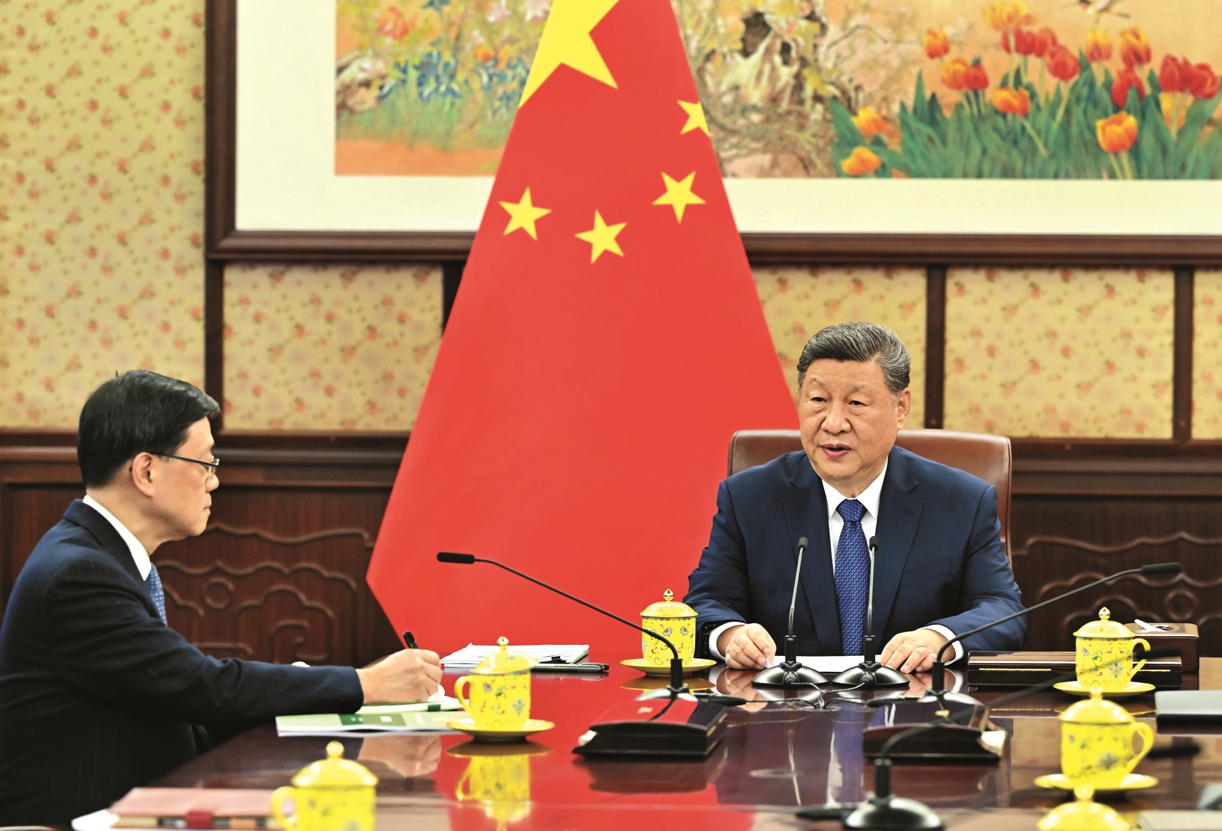 12月16日,国家主席习近平在中南海会见来京述职的香港特别行政区行政长官李家超。 新华社记者 殷博古摄