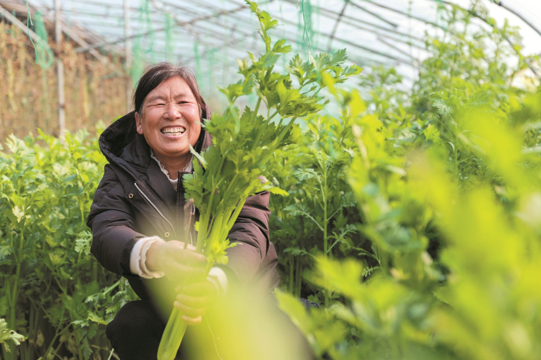 ▼图为12月16日,在山东省聊城市茌平区信发街道,农民在采收芹菜。