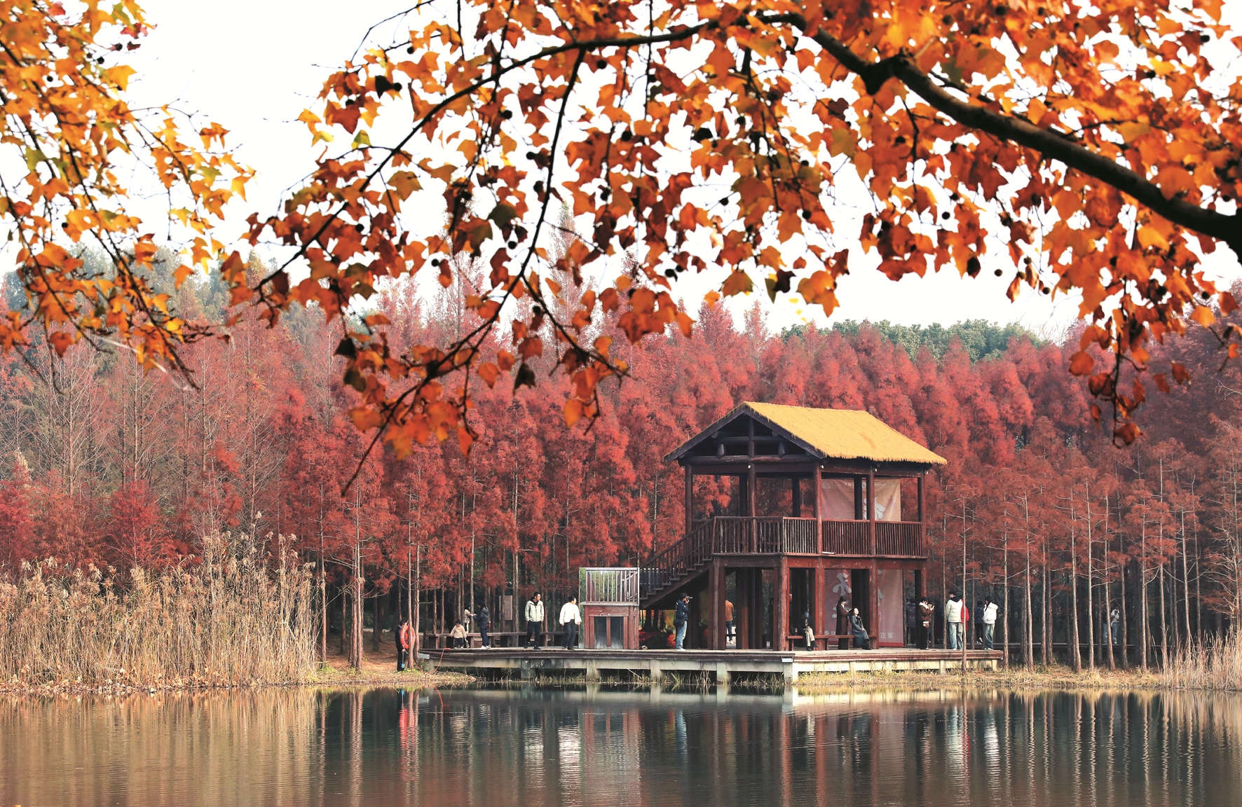 →图为12月17日,游客在江苏苏州虎丘湿地公园赏景游玩。