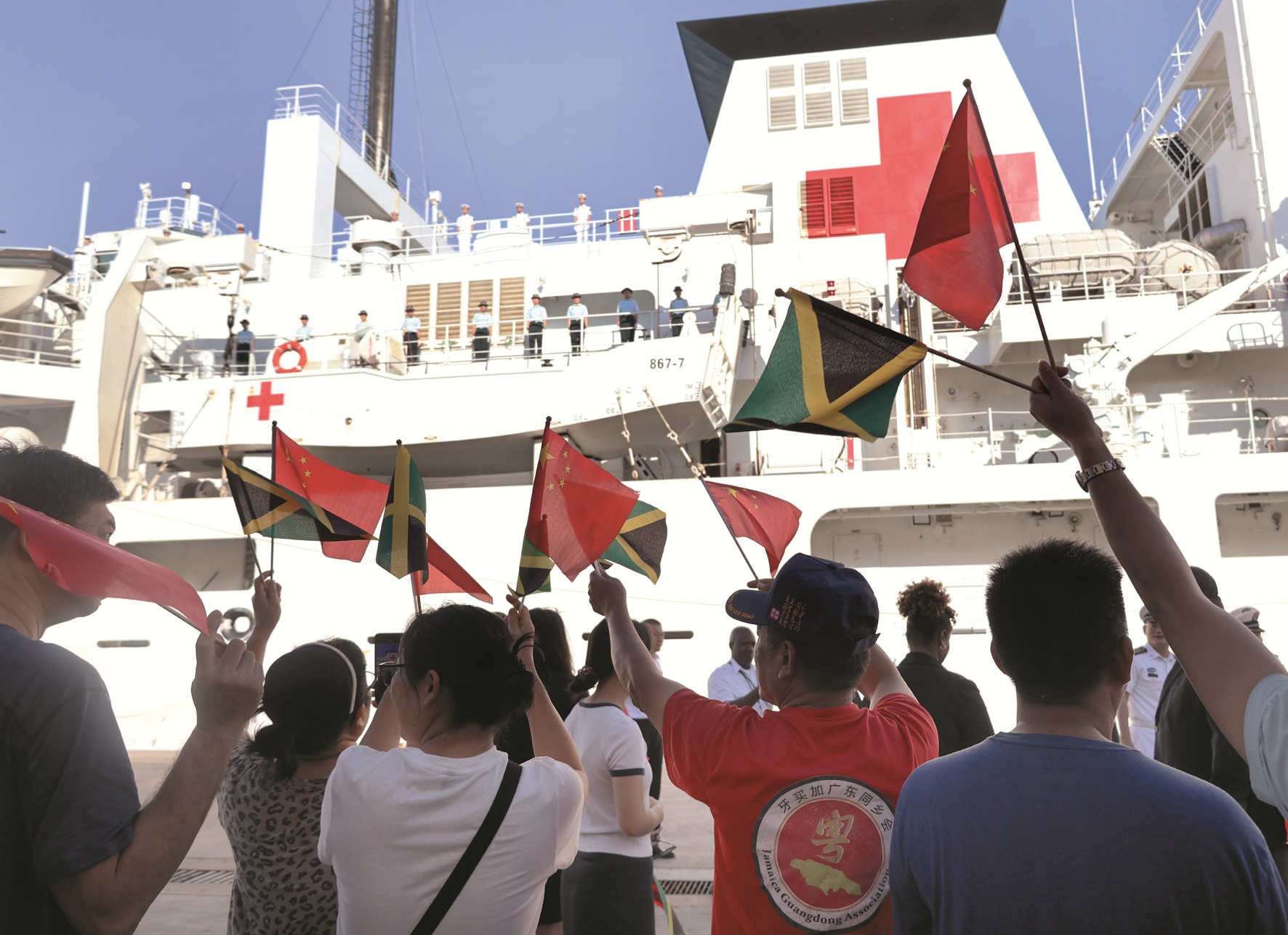 图①为12月16日,中国海军“丝路方舟”号医院船驶离牙买加法尔茅斯港。这是欢送仪式现场。