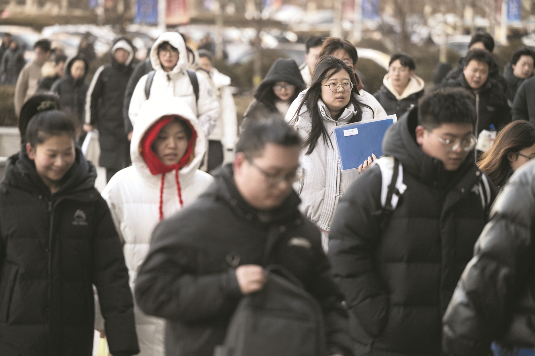 这是12月20日,考生在哈尔滨理工大学考点准备进入考场。