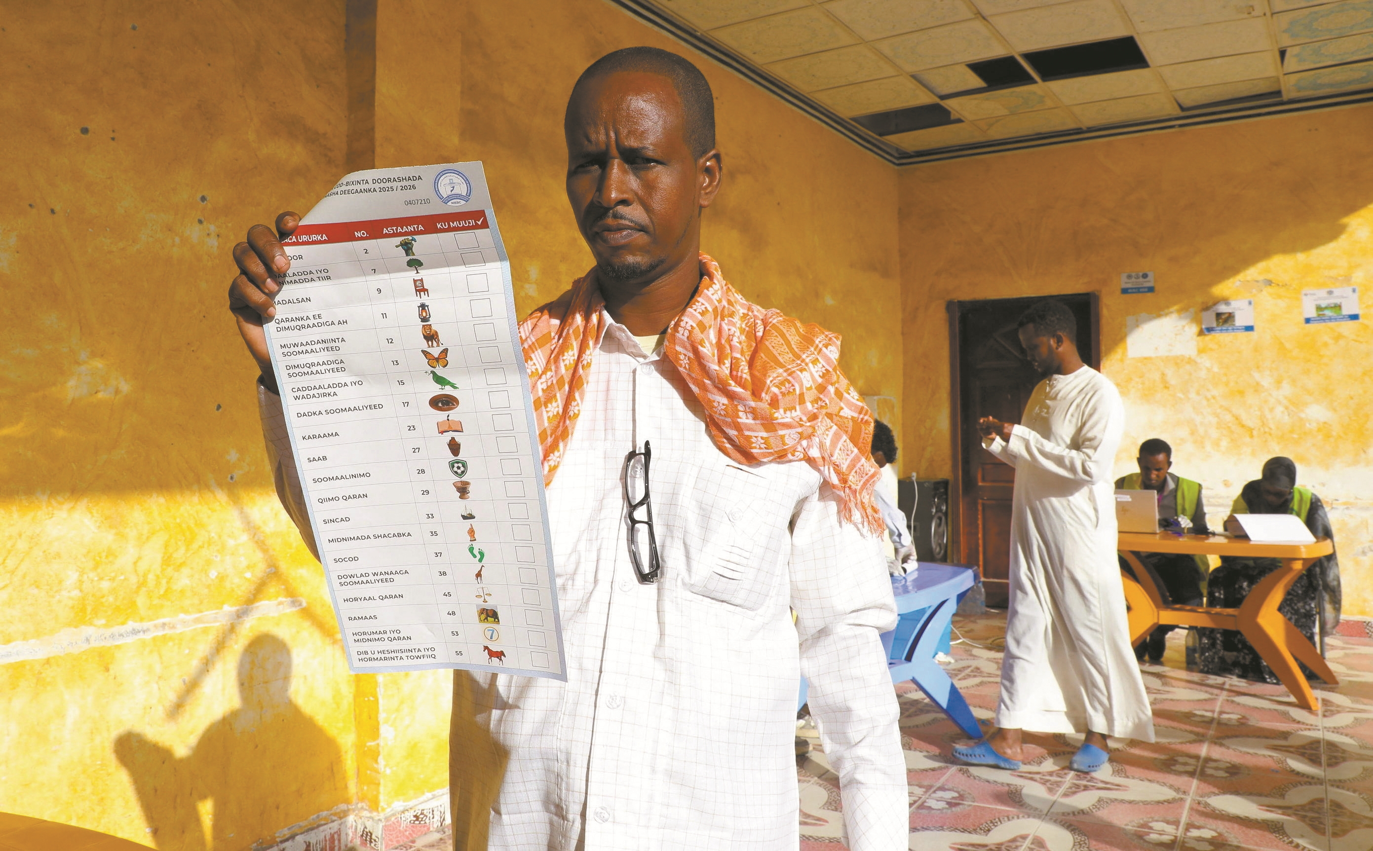这是12月25日,在索马里首都摩加迪沙一处投票站,一名选民手持选票。 (新华社发)