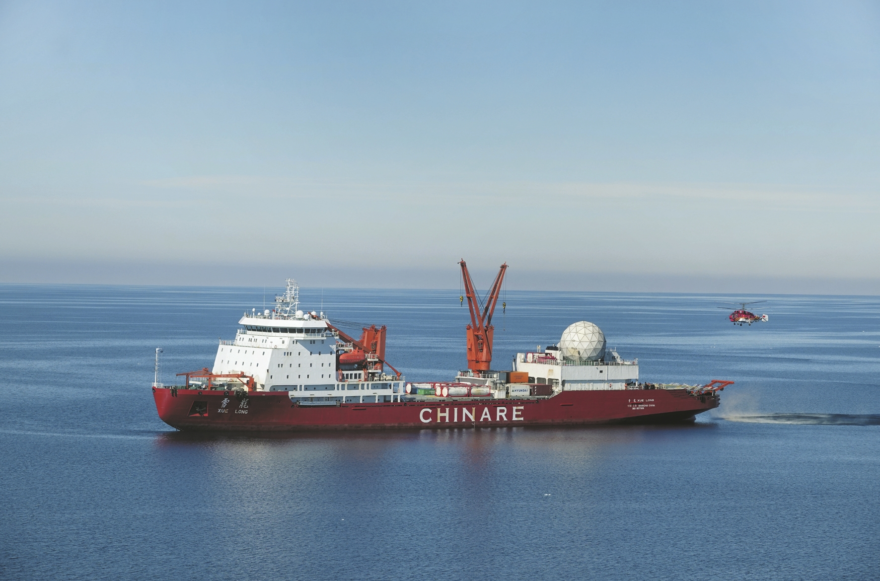 图为12月29日,“雪龙”号极地科考破冰船顺利抵达秦岭站海域,“雪鹰102”直升机接送人员上站。