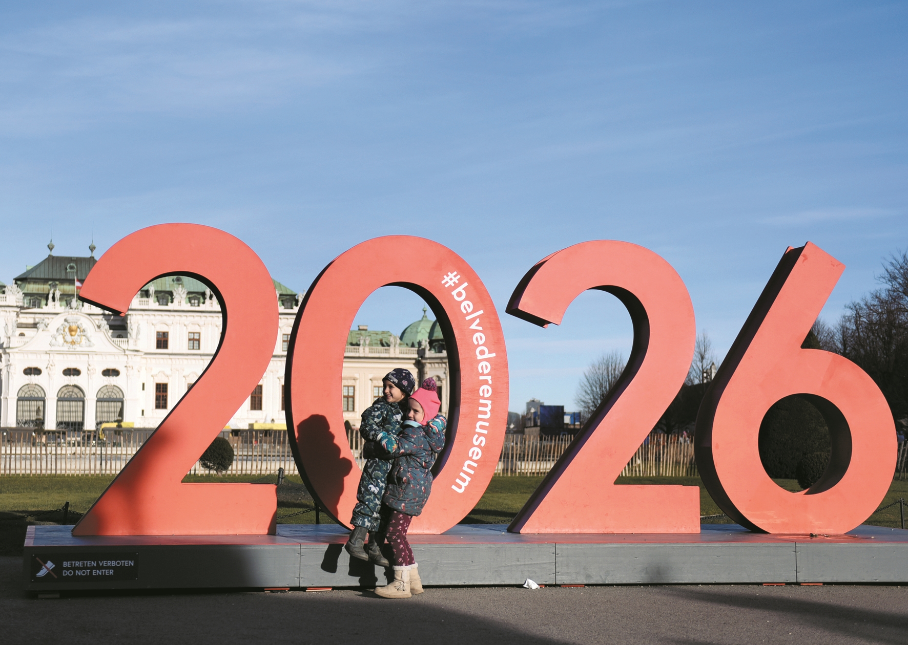 ▲图为2026年1月1日,在奥地利首都维也纳的美景宫,小朋友在“2026”标识前拍照留念。 新华社记者 贺灿铃摄