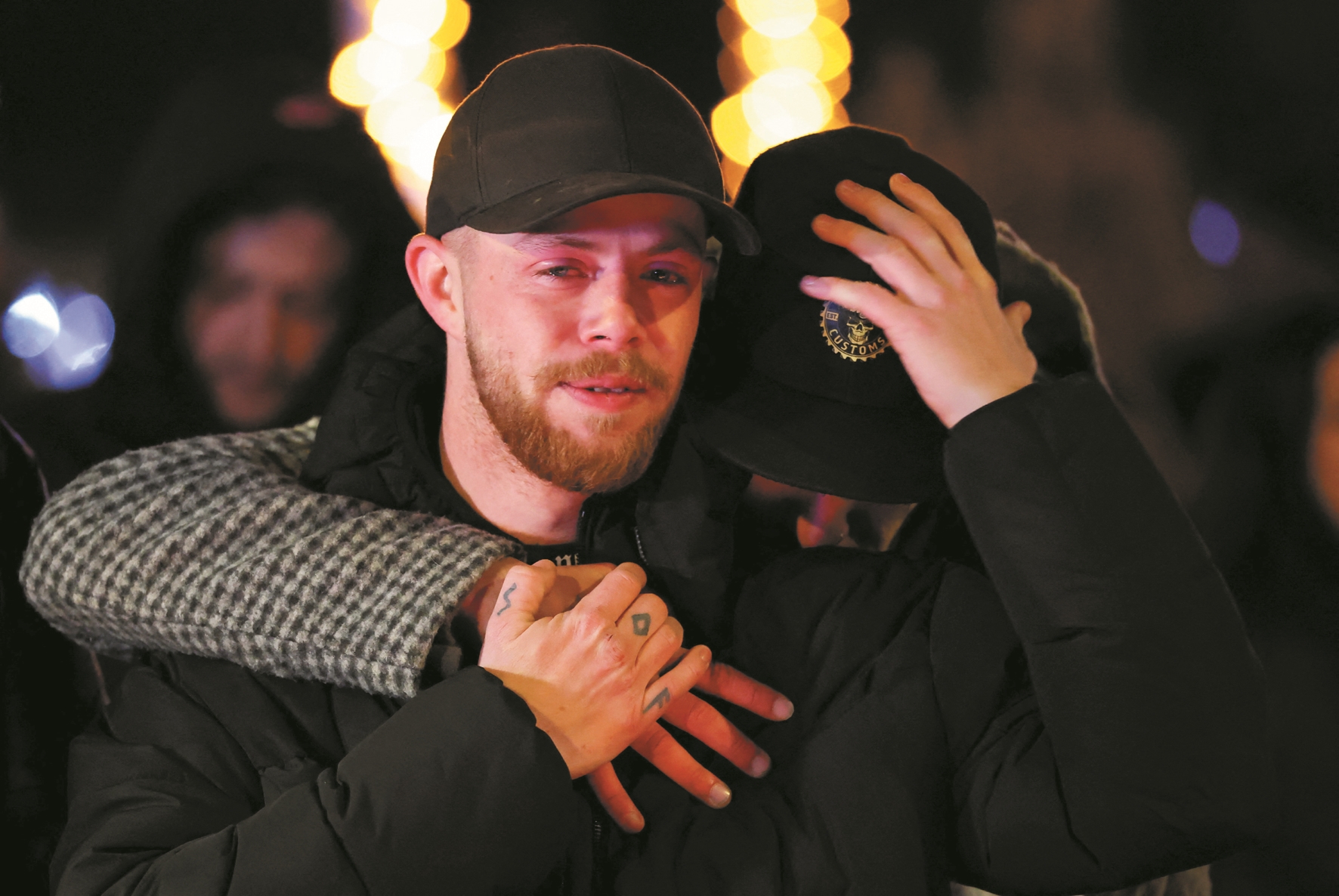 ?一月一日,人们在瑞士克朗-蒙大拿发生火灾的酒吧外悼念遇难者。(新华社发)