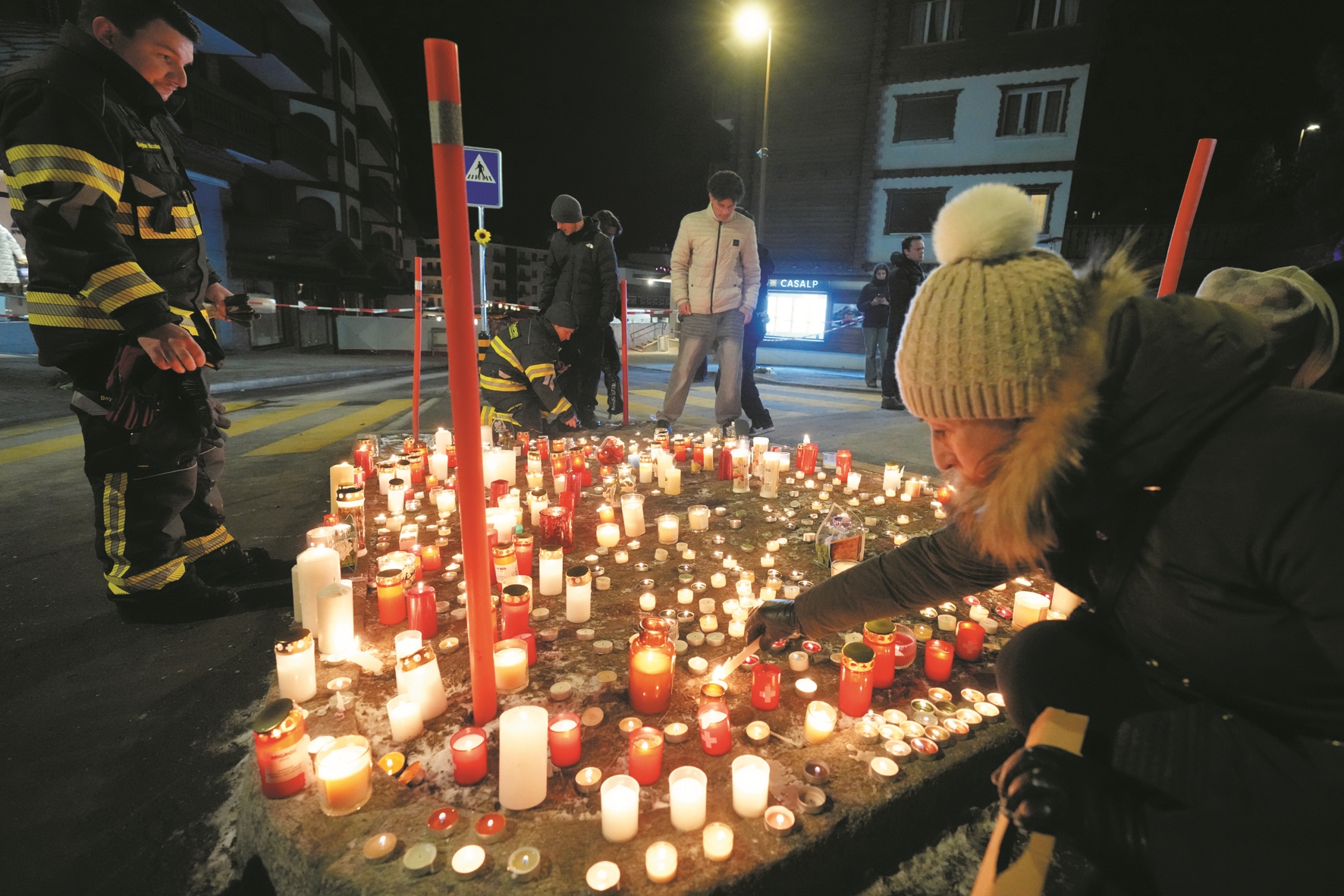 ?这是一月一日,人们在瑞士克朗-蒙大拿发生火灾的酒吧附近悼念遇难者。(新华社发)