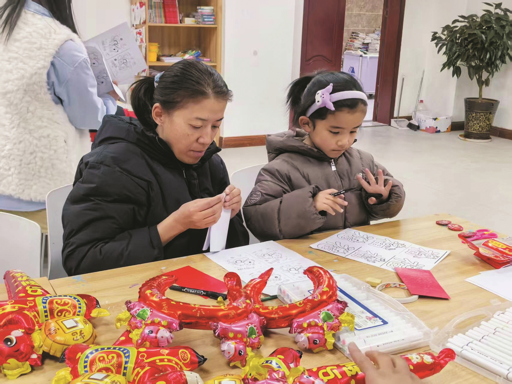 本次活动以马年元旦为文化背景,巧妙地将传统节日的丰富内涵与亲子手工实践相结合。在工作人员的悉心指导下,家长和孩子们携手投入到红包的制作中。