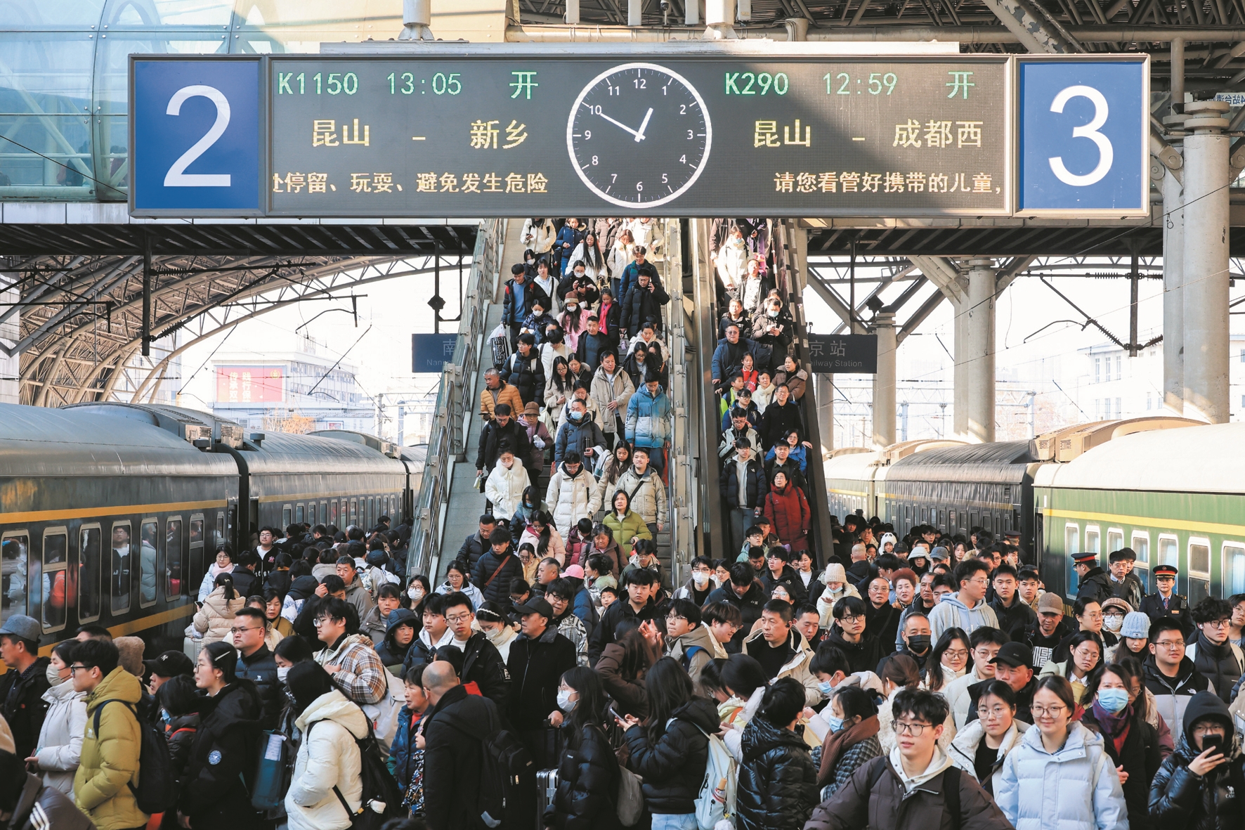 1月3日是元旦假期最后一天,铁路迎来返程客流高峰,全国铁路预计发送旅客1745万人次,计划加开旅客列车1343列。