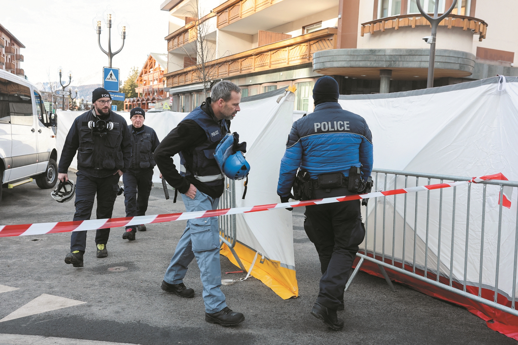 这是1月2日,警察在瑞士克朗-蒙大拿发生火灾的酒吧附近工作。 (新华社发)