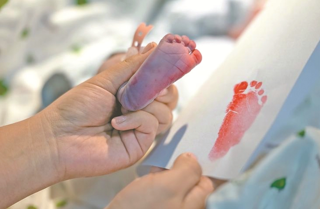 下图:1月1日,自治区人民医院妇产科助产医生次拉为新生儿印脚印。