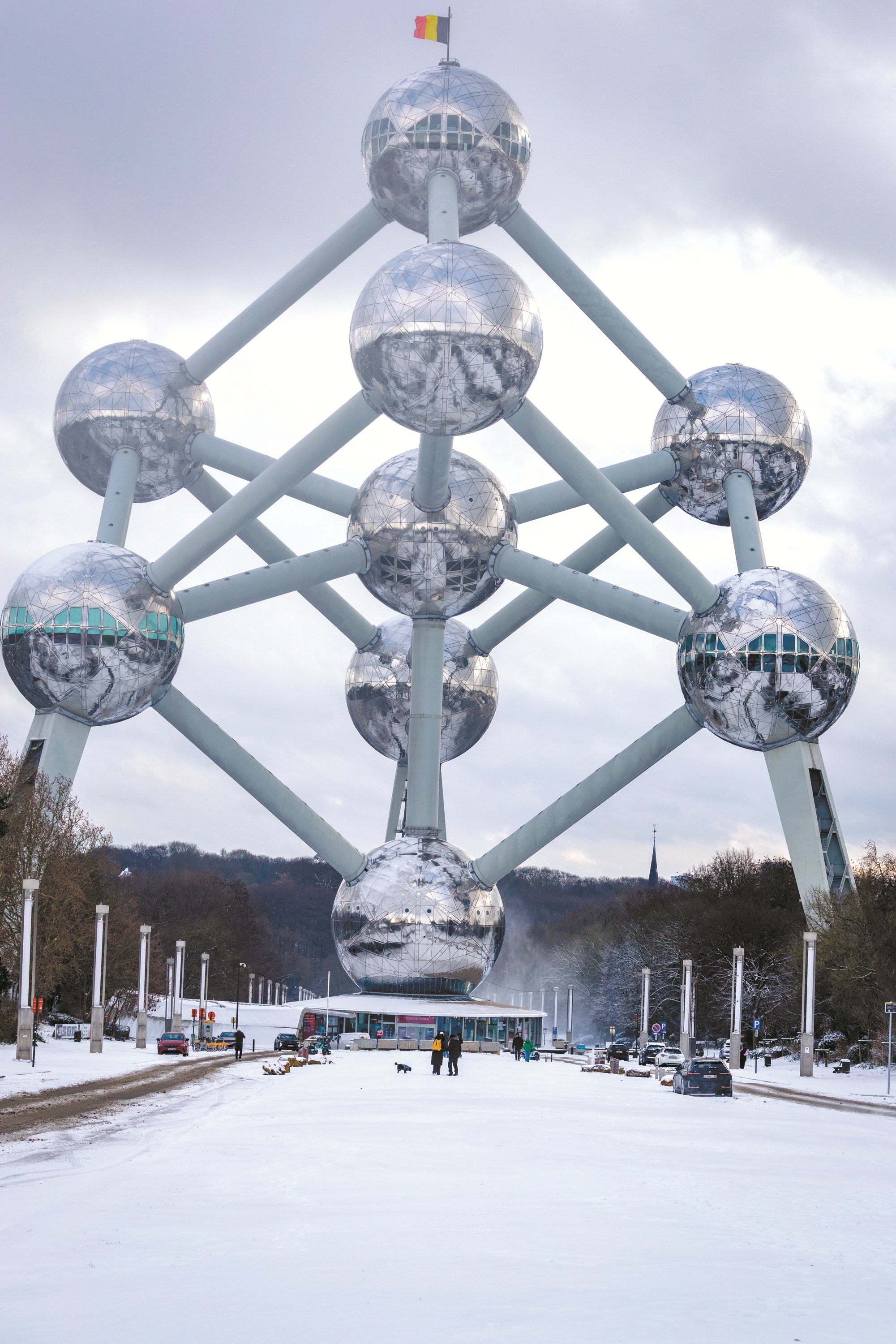 比利时未来几日将持续降雪低温天气。图为1月7日,在比利时布鲁塞尔,原子球塔附近的地面被积雪覆盖。 (新华社发)