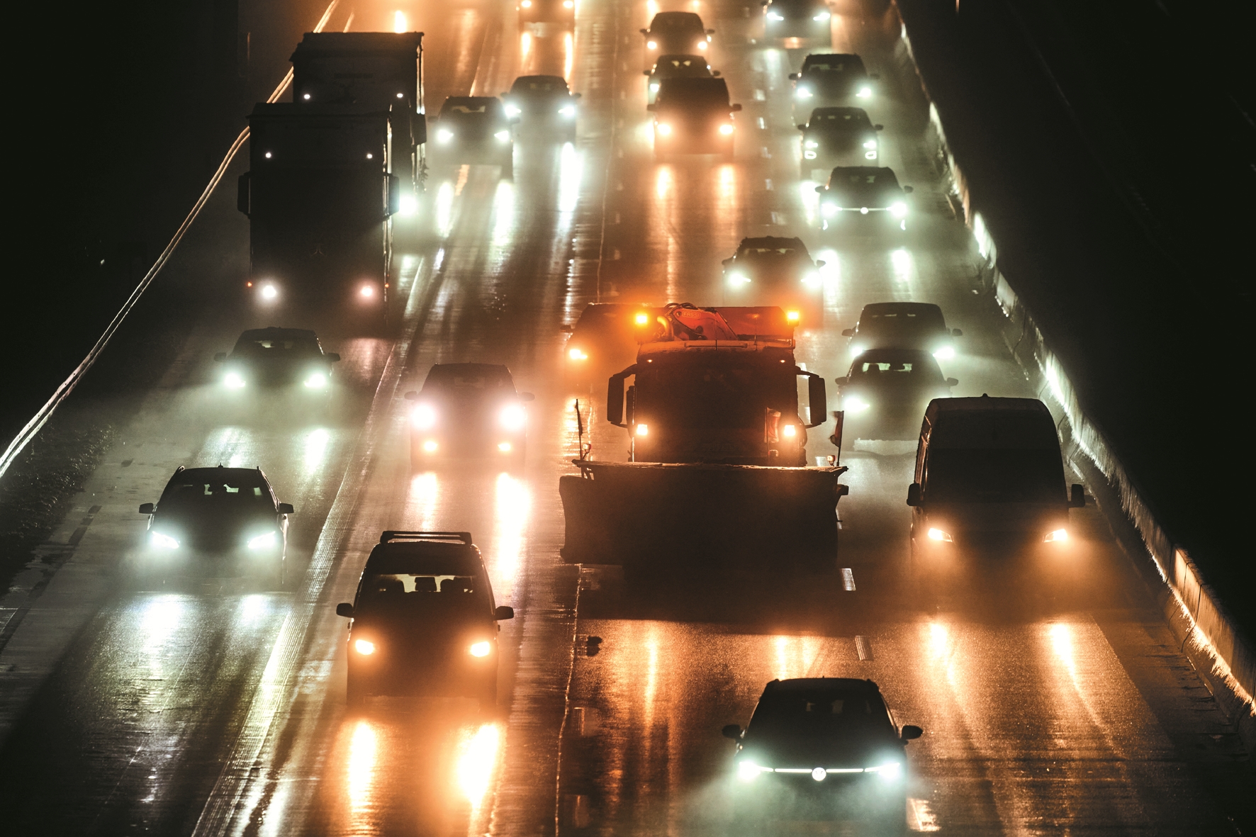 ?1月12日,一辆扫雪车行驶在德国法兰克福的高速公路上。 (新华社发)
