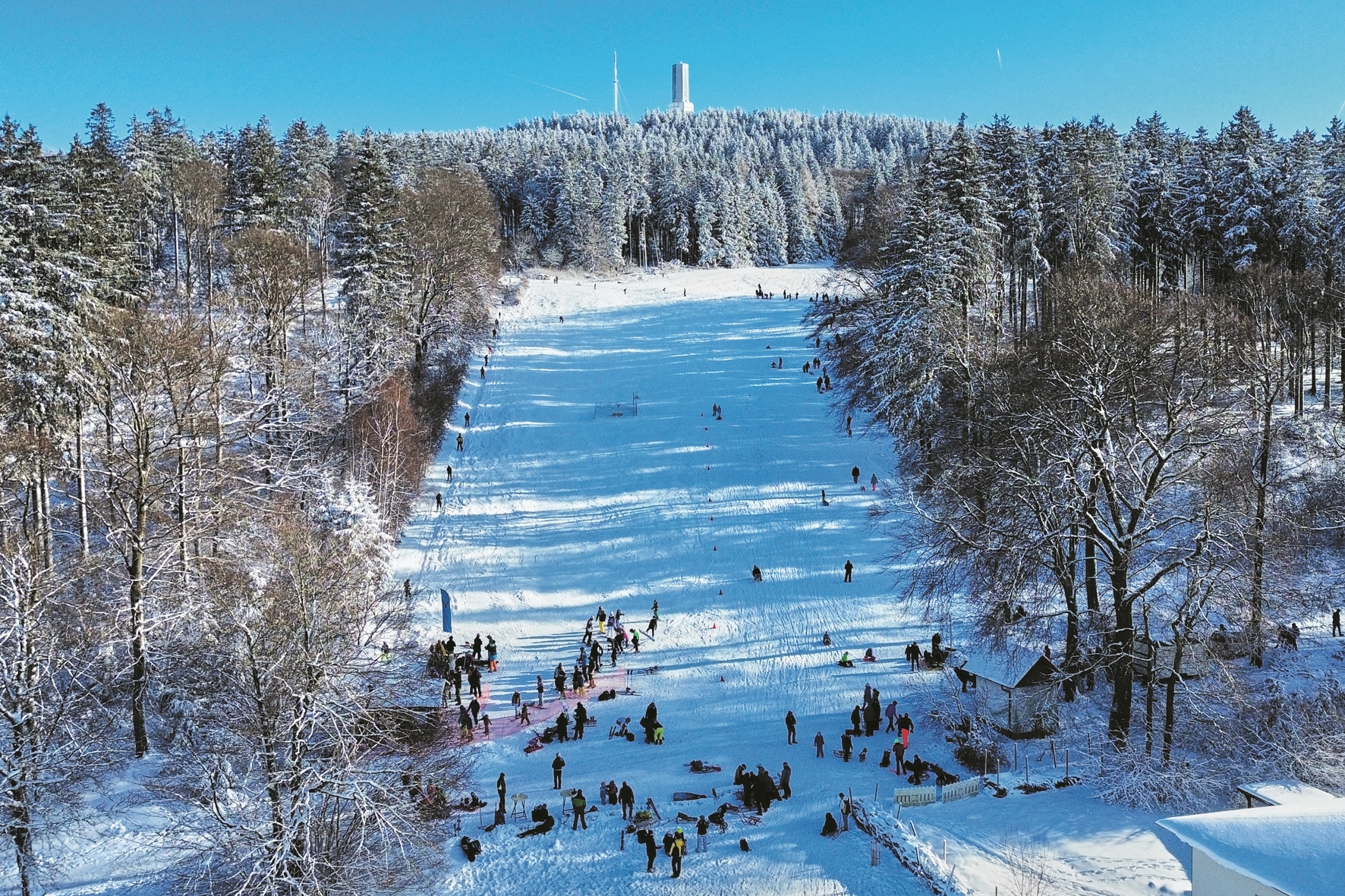 ▲图为1月11日,人们在德国法兰克福附近的一处山坡滑雪休。 (新华社发)