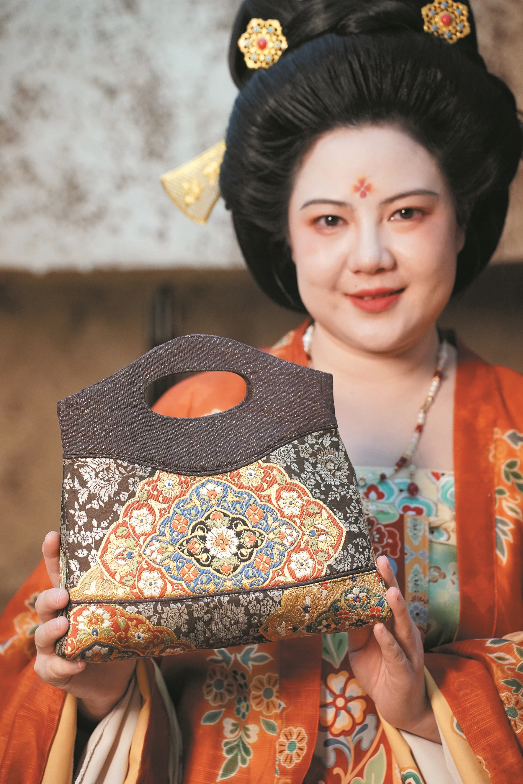 ?图为1月9日,李欢在展示她的团队用唐锦工艺制作的文创产品。