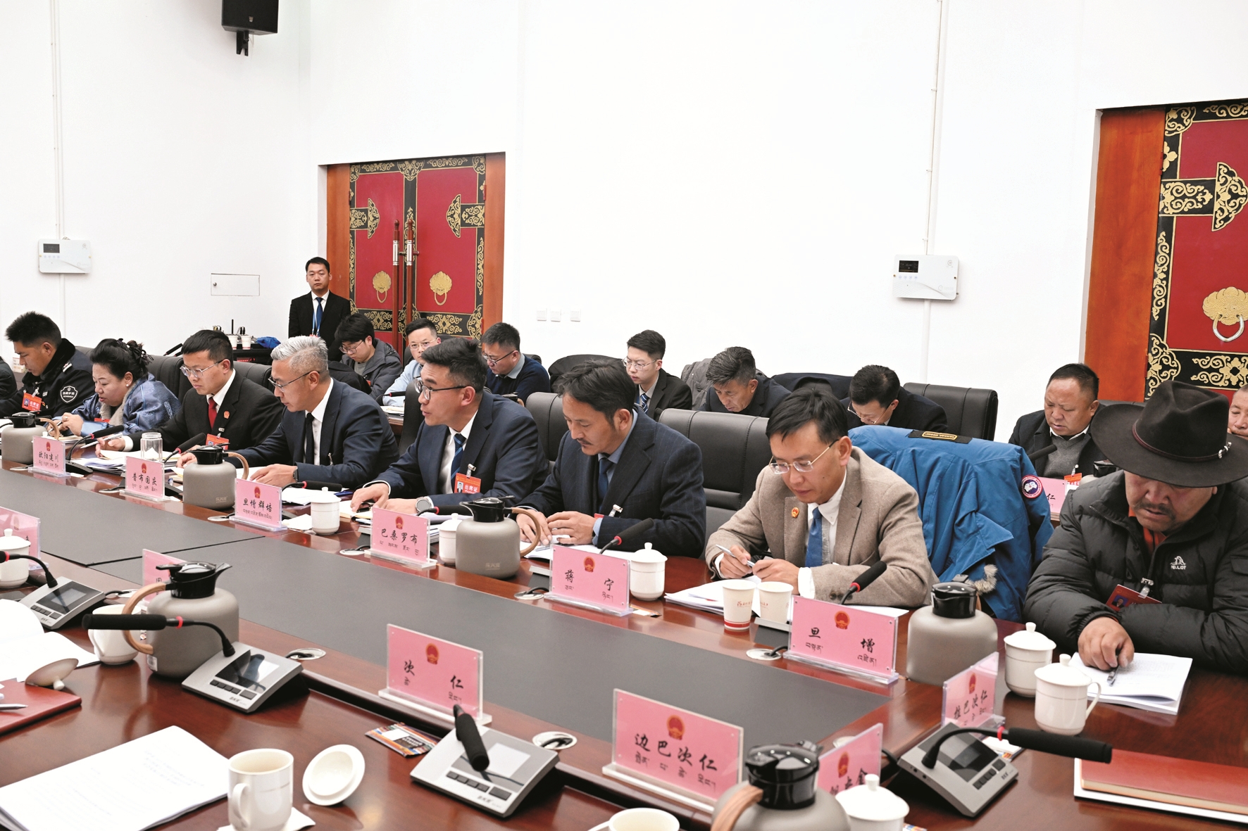 市领导贺鹏、占堆、张定成、林勇、王慧、徐海、张春阳、马文清、郑卫国、彭飞跃、达瓦、次仁顿珠、陆从福、洛色、赵世东、巴桑多吉、罗丹、李世蓉等分别参加各代表团分组审议。