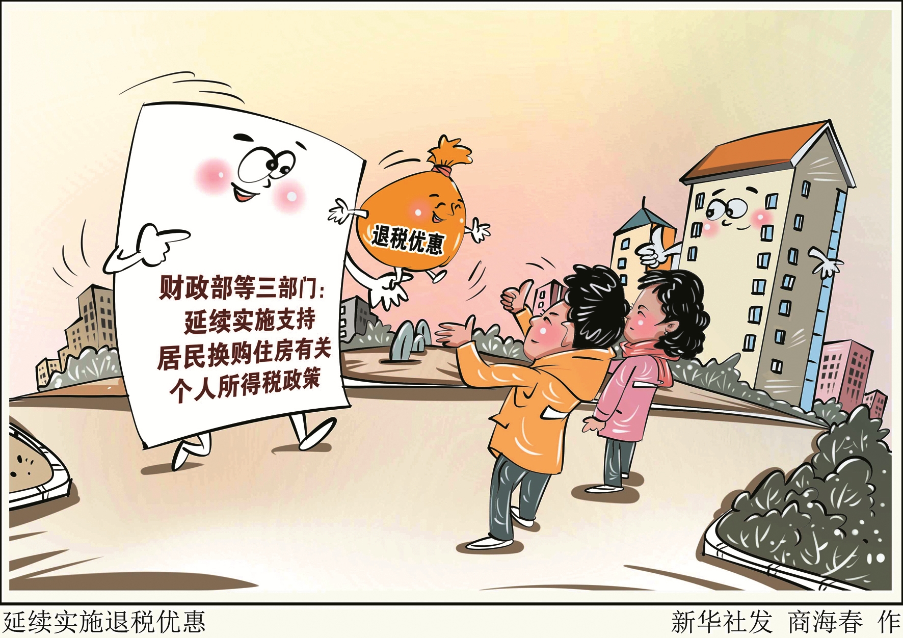 为继续支持居民改善住房条件,财政部、国家税务总局、住房城乡建设部1月14日对外发布公告称,自2026年1月1日至2027年12月31日,对出售自有住房并在现住房出售后1年内在市场重新购买住房的纳税人,对其出售现住房已缴纳的个人所得税予以退税优惠。(新华社发)