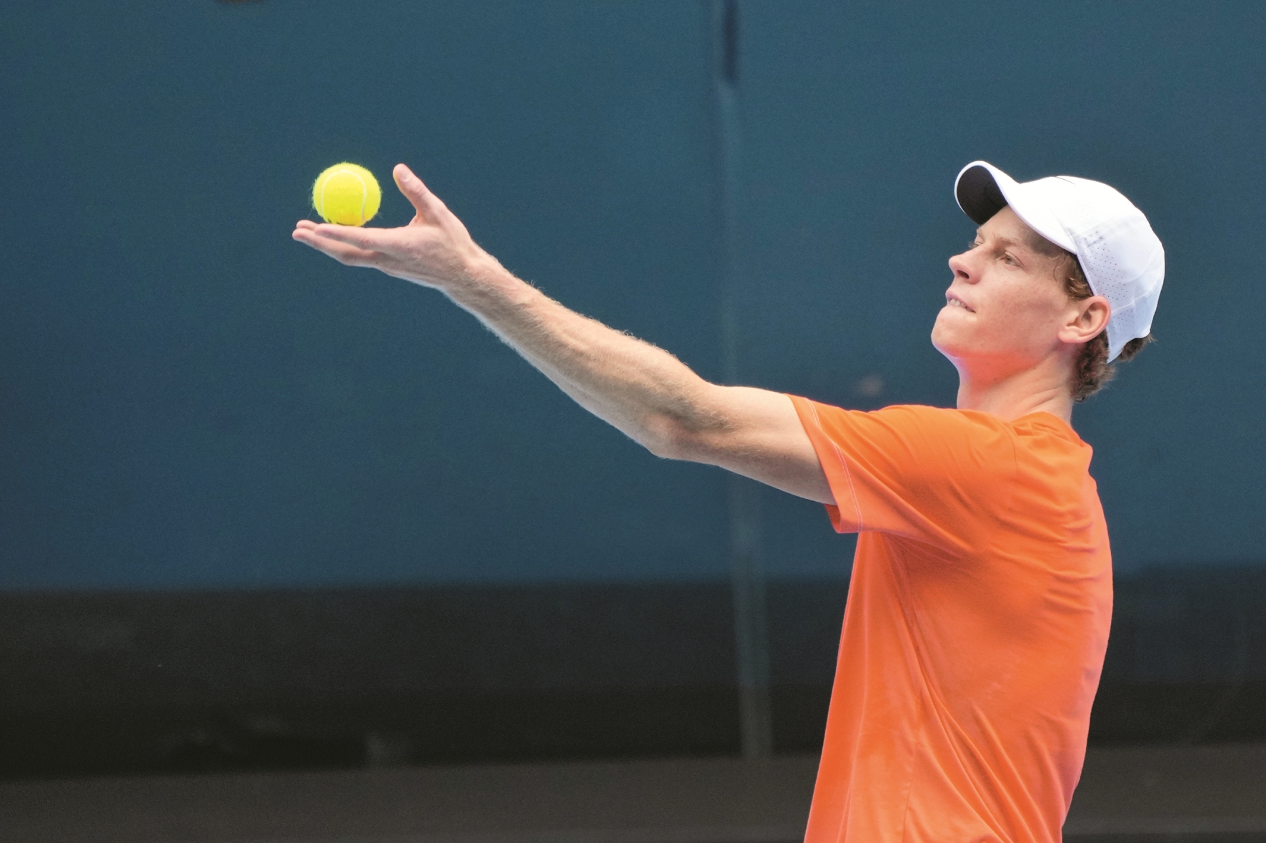 这是1月15日,在澳大利亚墨尔本,意大利选手辛纳进行赛前训练,备战澳大利亚网球公开赛。(新华社发)