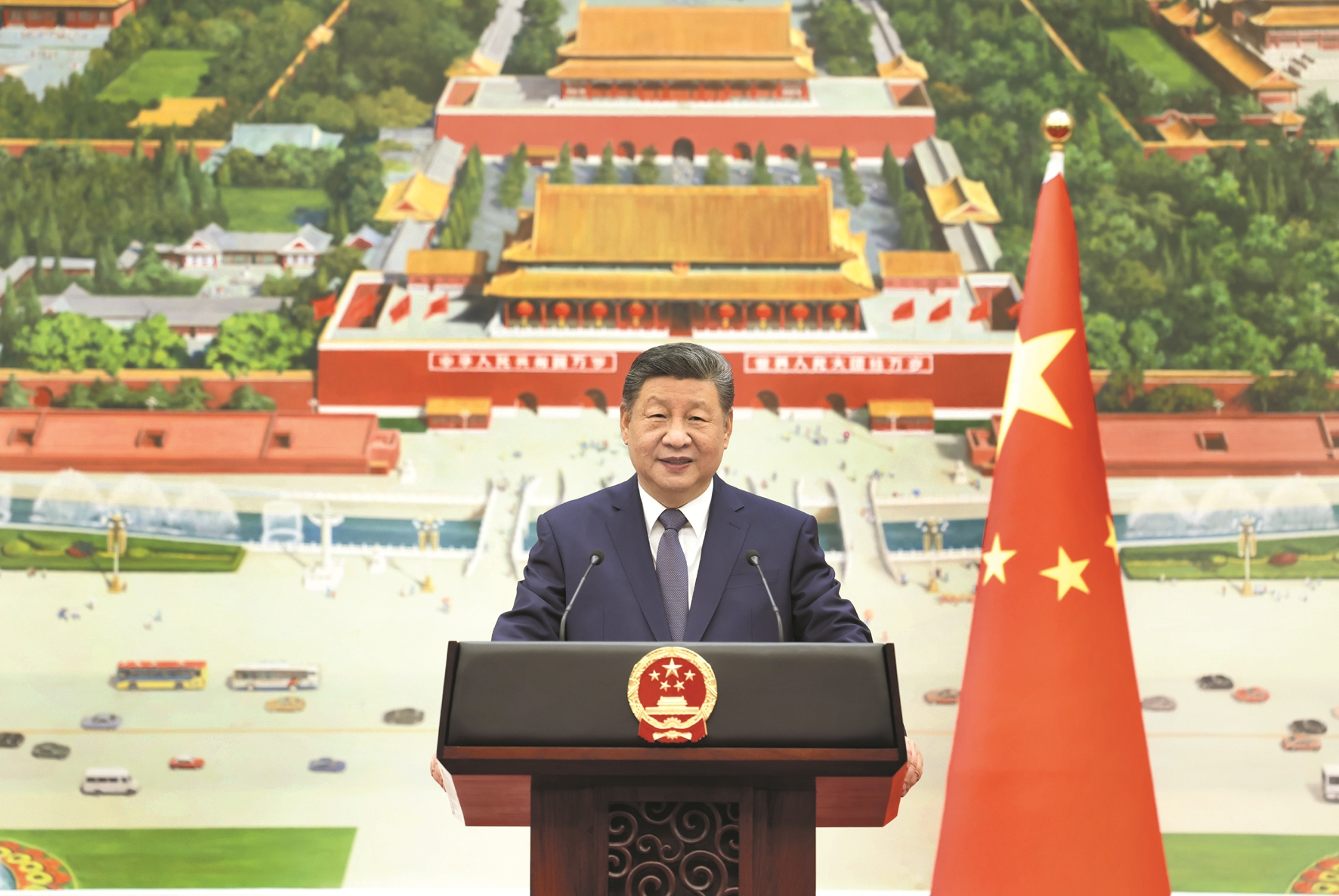 习近平指出,今天的世界,百年变局加速演进,国际形势变乱交织,全球性挑战更加突出。分裂对抗、零和博弈注定没有出路,让世界重回丛林法则不得人心,同球共济、团结合作才是唯一正确选择。我提出全球治理倡议,旨在推动构建更加公正合理的全球治理体系。中国将始终站在历史正确一边,以人民之心为心、以天下之利为利,同各国一道推动构建人类命运共同体。
