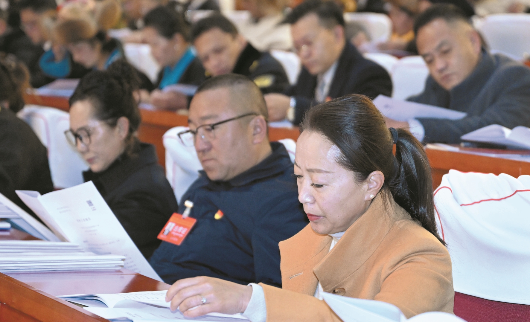 图①为人大会议现场。