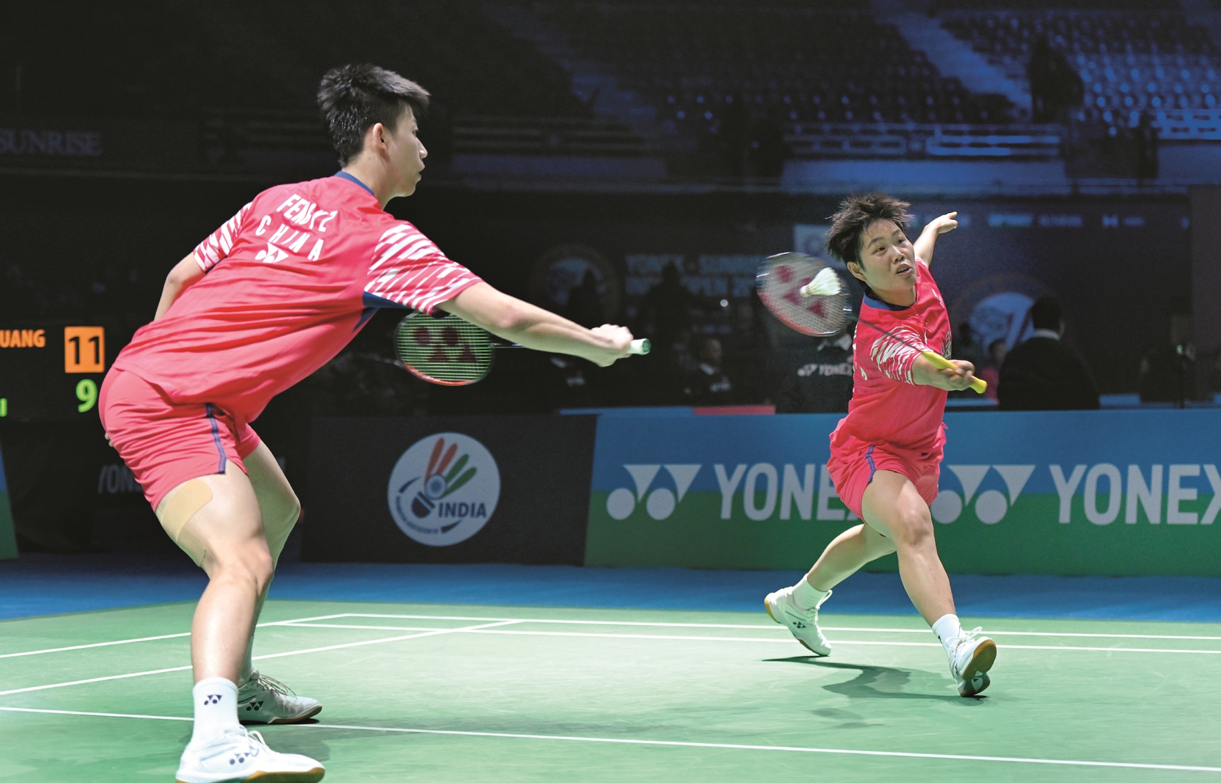 ▼图为当日,冯彦哲/黄东萍(右)在比赛中。