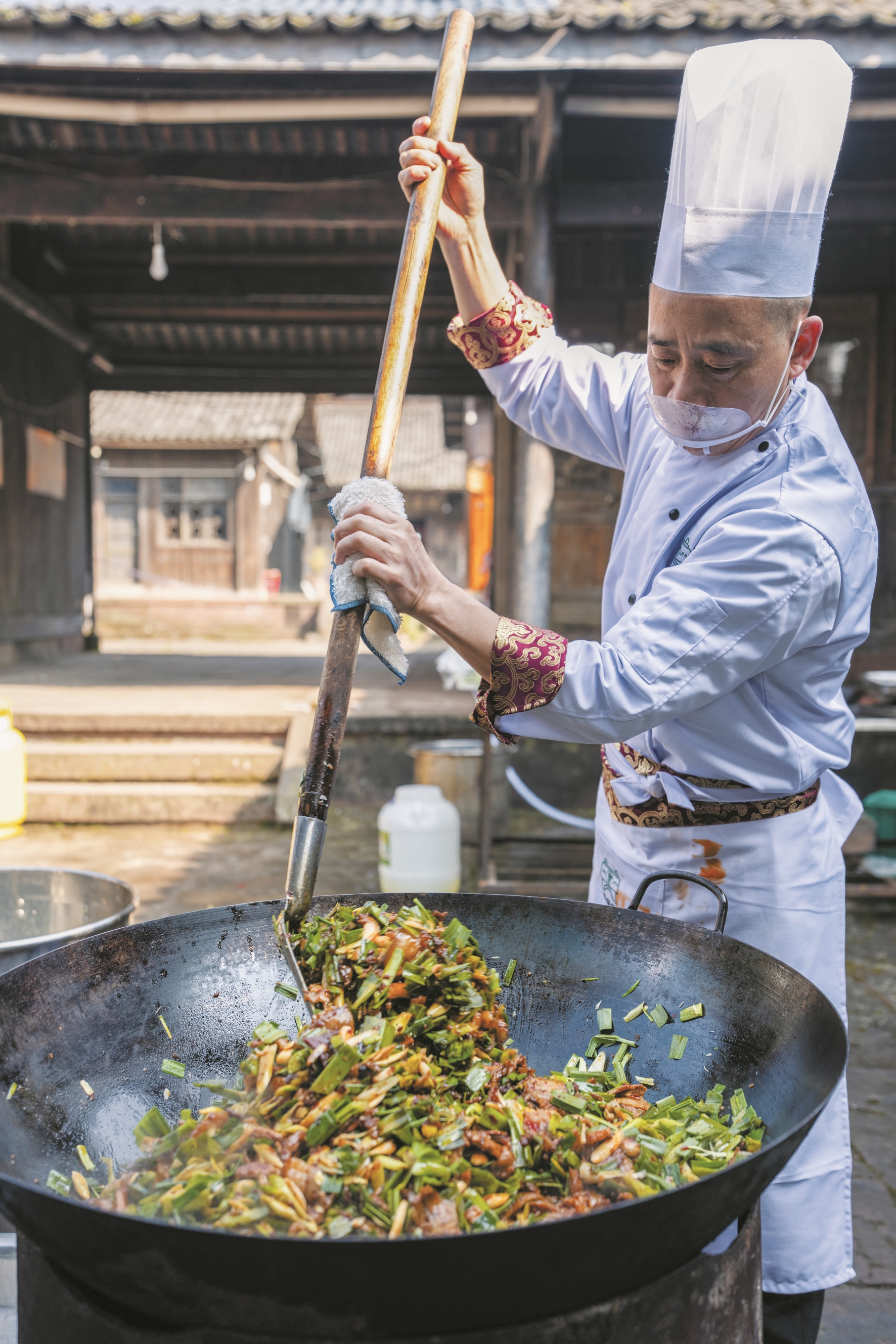这是1月17日,在雅安上里古镇,厨师准备坝坝宴。