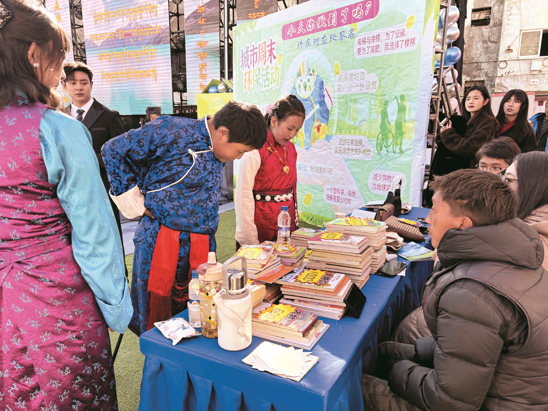 活动在极具民族特色的舞蹈《雪巴拉姆》中拉开序幕,优美的舞姿与环保主题相得益彰,瞬间点燃了现场气氛。一群身着统一服饰的环保小卫士化身“绿色小使者”,穿梭在周边商户之间,将环保无纺布袋送到经营者手中,用稚嫩的声音呼吁大家减少塑料袋使用,选购绿色环保年货,从源头践行低碳生活。