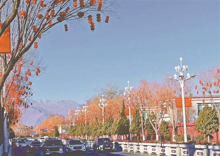 春节、藏历新年临近,拉萨街头年味渐浓。近日,在拉萨主城区多条街道,市政工人正忙着悬挂灯笼。放眼望去,鲜艳的灯笼如累累果实般点缀着冬日街景,在高原的阳光照耀下显得格外喜庆。