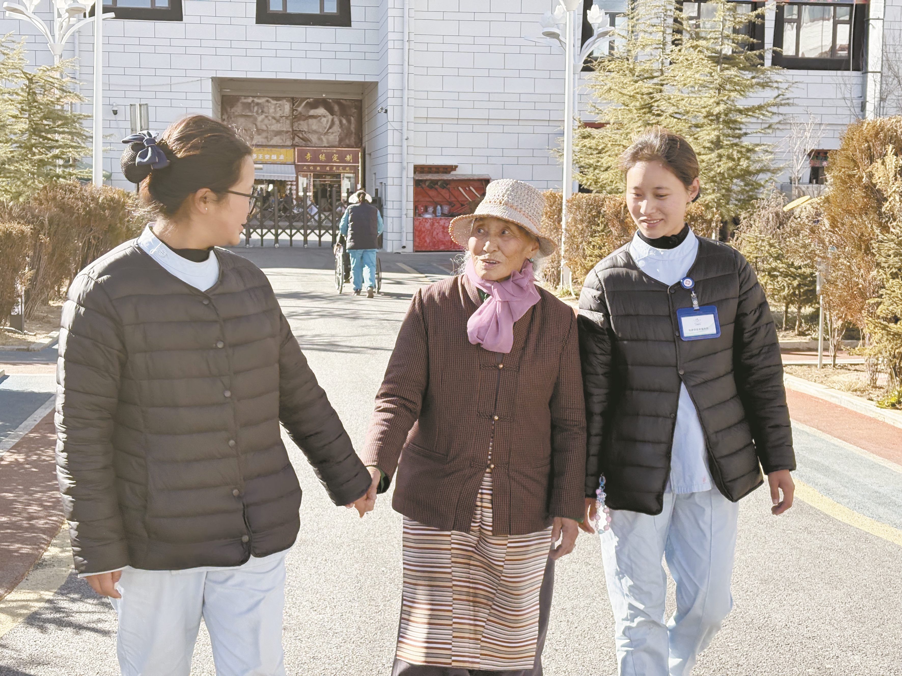 每天上午,门诊护士都前往院区为老人们测量血压、登记信息。她们一边测量,一边耐心询问老人的身体状况。在拉萨市社会福利院,老年门诊不仅是看病问诊的场所,更成了老人们的“健康驿站”。医护人员用专业的医疗技术、温暖的服务态度,为老人们筑起一道坚实的健康屏障。在这里,测量血压、定期体检、慢性病管理等服务常态化开展,医护人员与老人们朝夕相处,早已亲如家人。