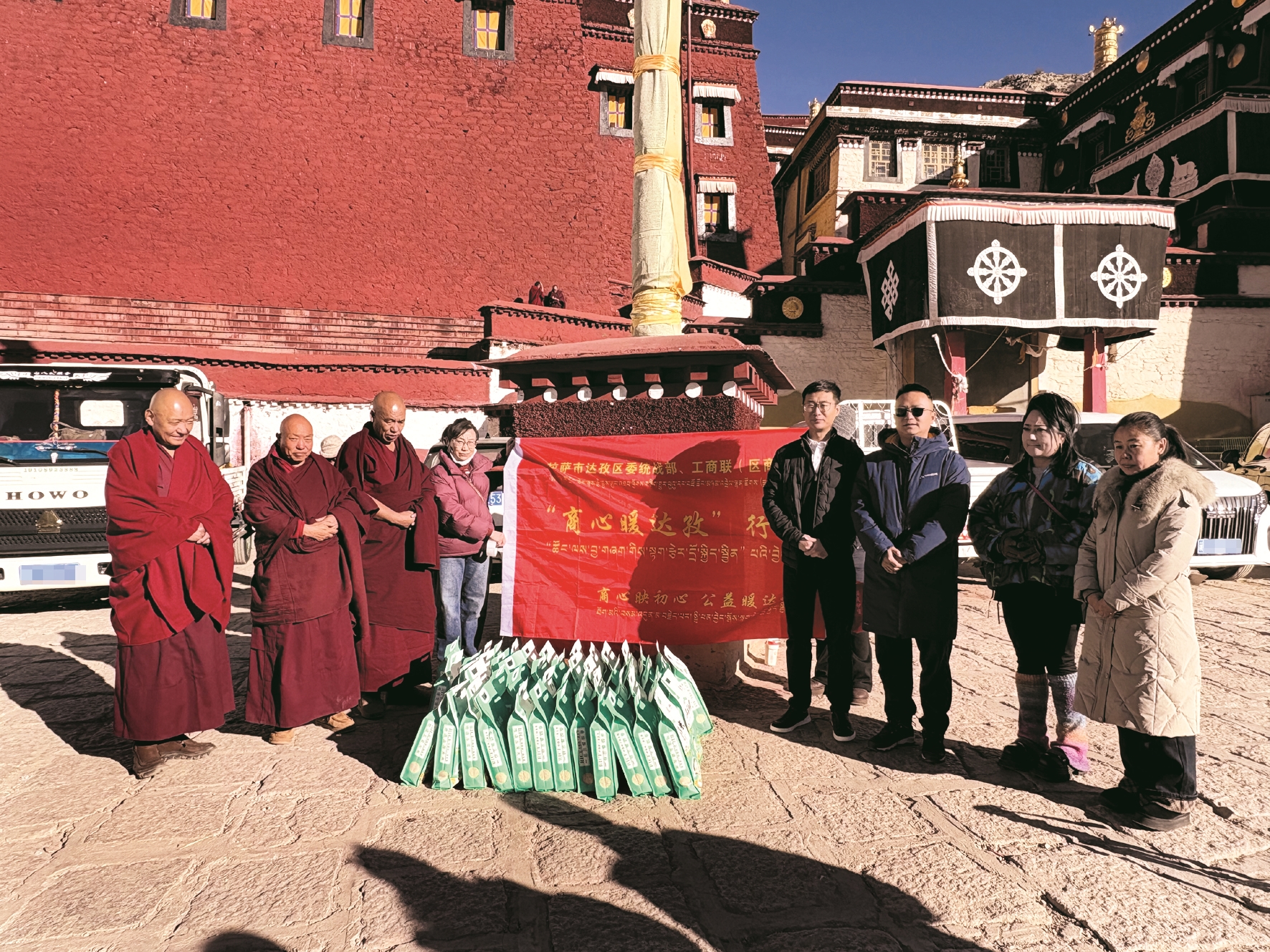 拉萨融媒讯(记者莫瑞英)为推动党的创新理论和惠民政策走进宗教活动场所,近日,达孜区工商联联合西藏普德医药有限公司走进甘丹寺,开展“商心暖达孜”主题活动。