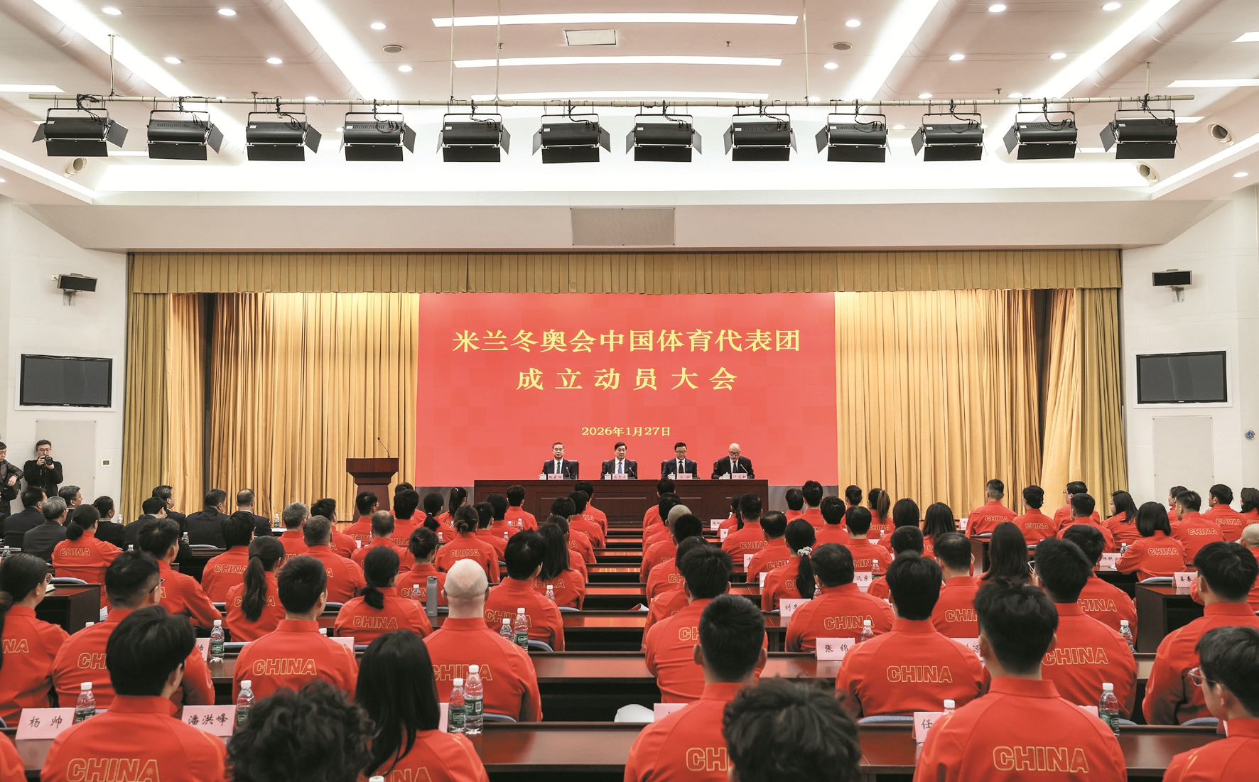 1月27日,米兰冬奥会中国体育代表团成立动员大会在北京召开。 图片均为当日拍摄的成立动员大会现场。 新华社记者 那宇奇摄