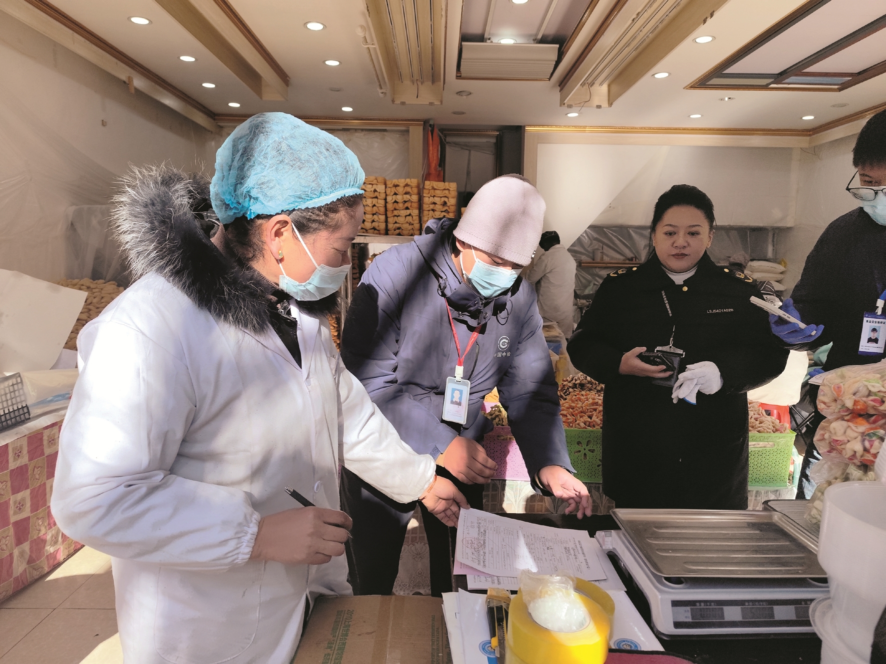 拉萨融媒讯(记者齐永昌)1月28日,拉萨市市场监督管理局联合自治区计量测试所,针对节前传统食品消费特点,在林廓西路卡塞集中销售区域开展专项检查,保障春节、藏历新年期间食品安全与市场计量秩序,确保市民过上安心、祥和的节日。