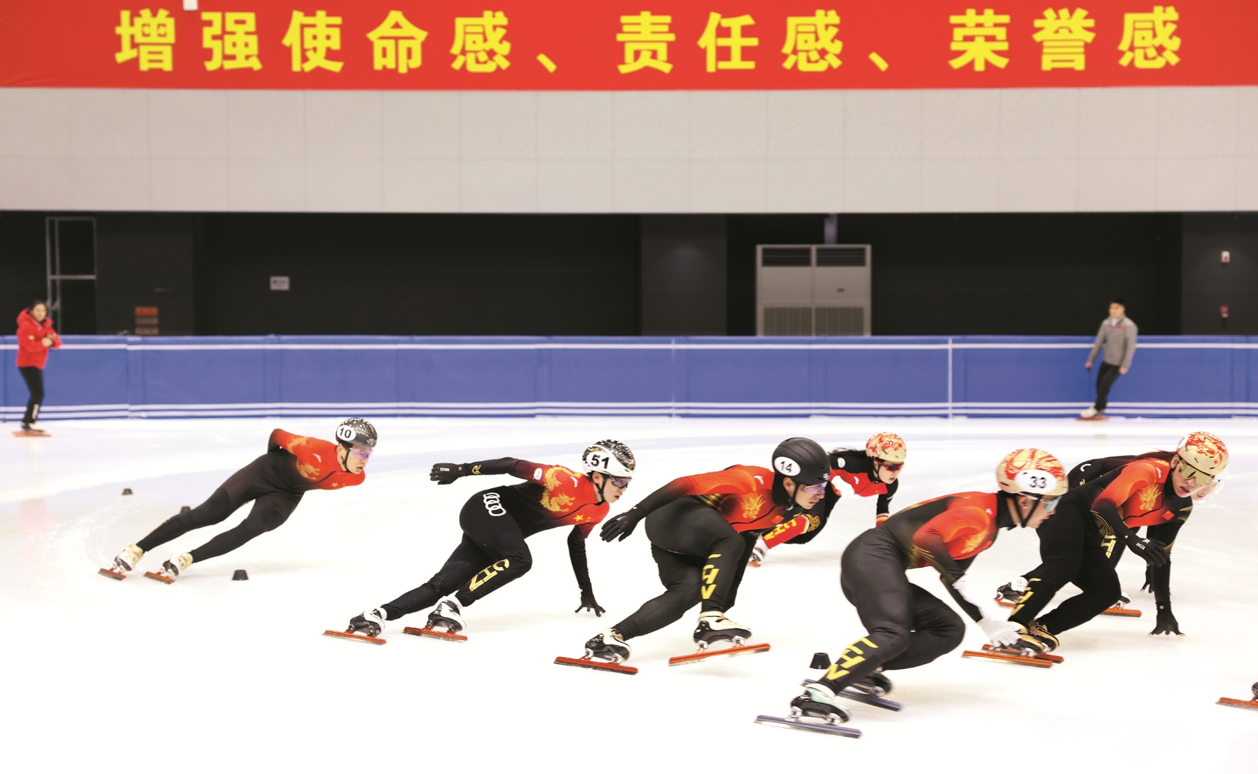 图为1月29日,中国短道速滑队选手在训练中。