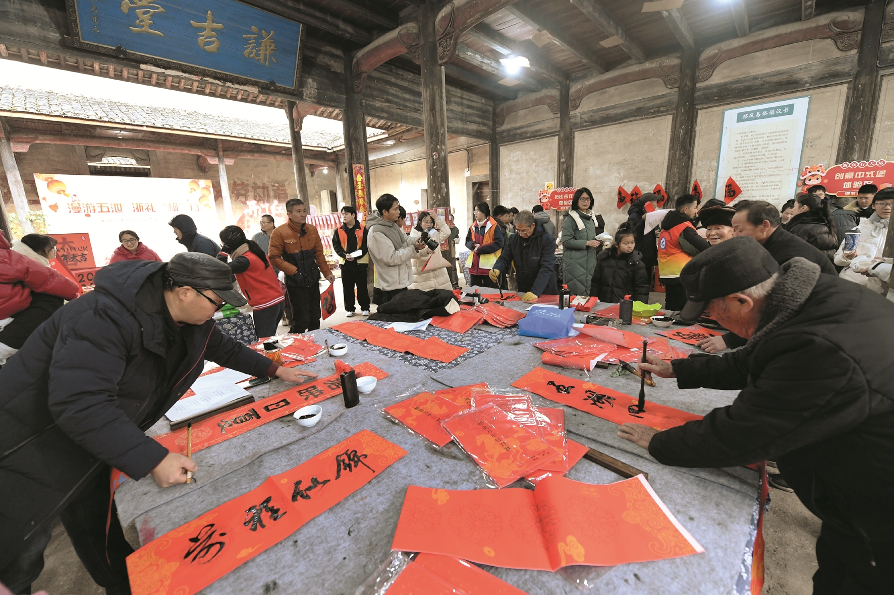 新春将至,浙江省诸暨市五泄镇在古民居内开展了一场迎新活动,将传统年俗和共富产品展销结合,营造浓郁的节庆氛围。