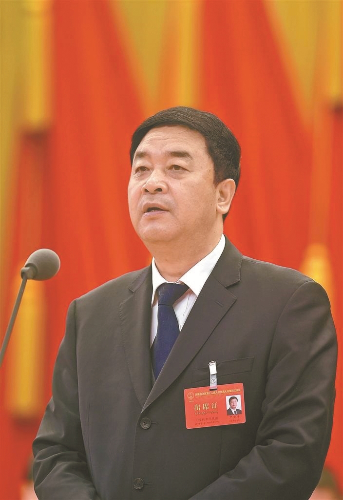 根据会议议程,自治区主席嘎玛泽登代表自治区人民政府向大会作政府工作报告,报告分三部分:2025年和“十四五”时期工作回顾、“十五五”时期经济社会发展把握的重要要求、2026年重点工作。