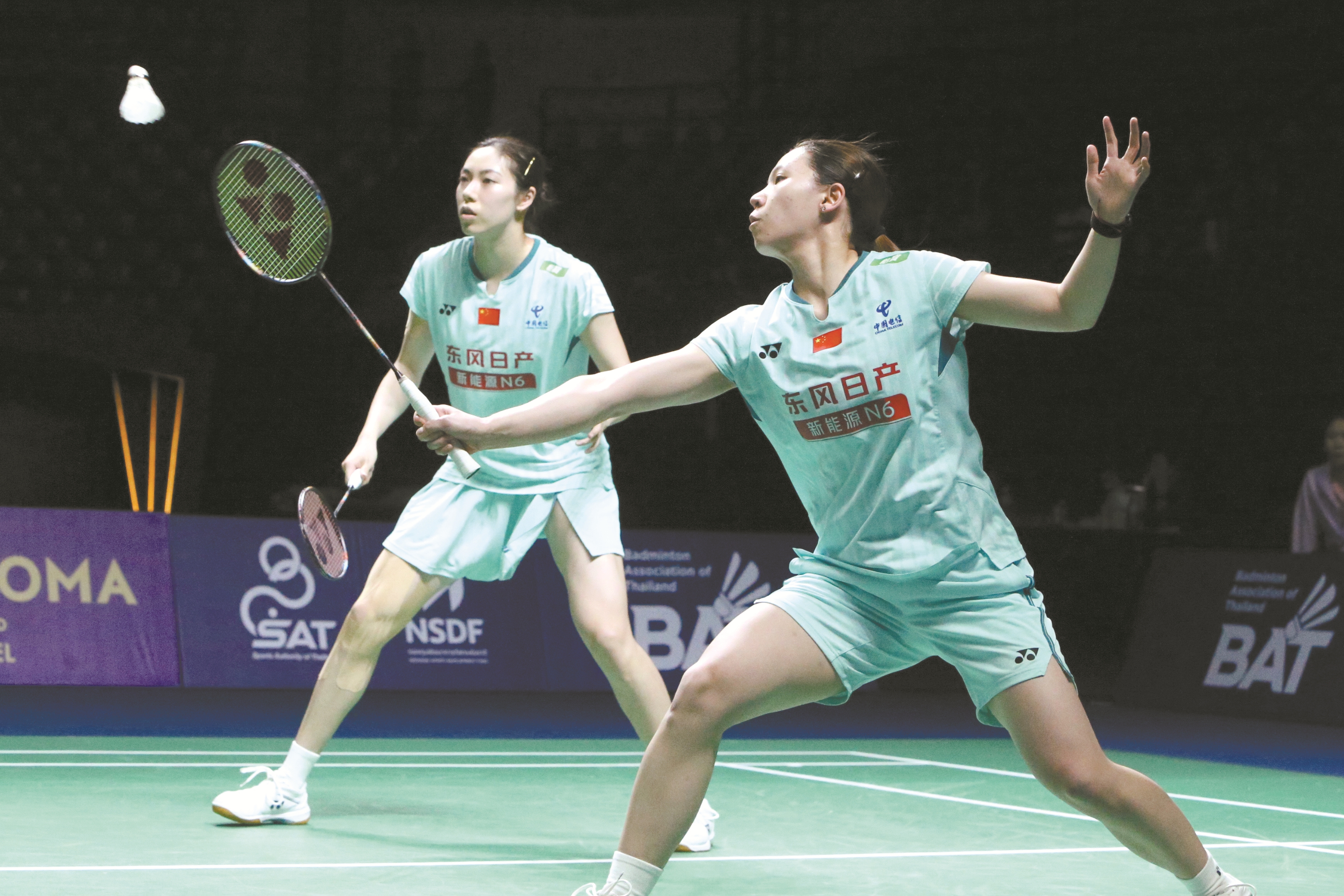 图为当日,鲍骊婧、李怡婧(右)在比赛中。 (新华社发)