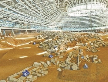 牛河梁遗址考古现场第二地点内景。