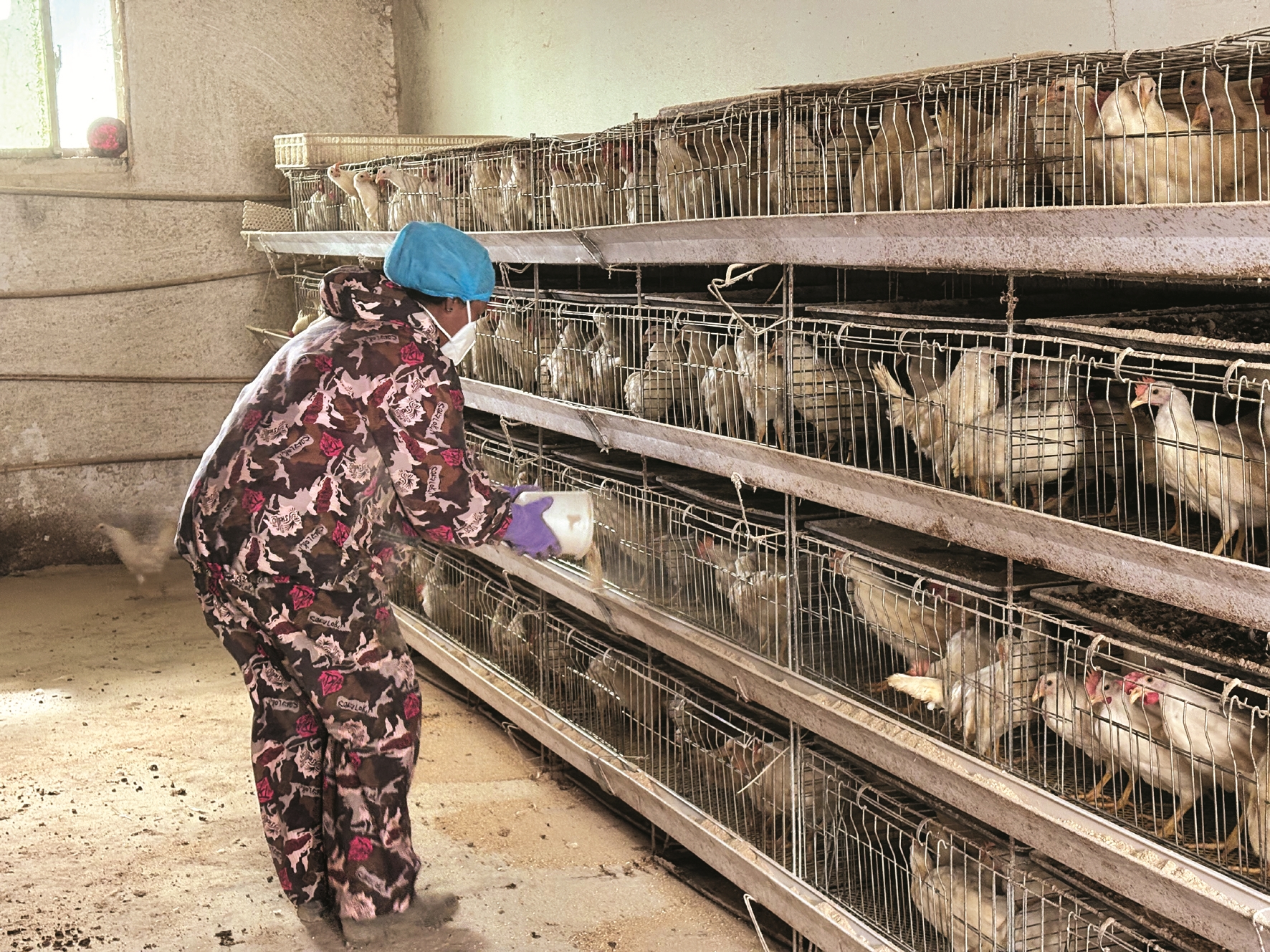 近日,记者走进曲水县三有村,远远便听见鸡鸣声,一排排鸡笼排列整齐,上万只鸡在整齐的鸡舍里“引吭高歌”,从饲养、产蛋、收蛋,这里实现了专业的现代化养殖流程。在养鸡场的饲料区,员工措吉正推着装满混合饲料的推车穿梭在鸡舍间,她熟练地打开投喂口,均匀地将饲料撒入食槽。这些饲料都是根据藏鸡的生长习性所搭配的,有玉米、豆粕还有青稞糠,营养均衡才能让鸡下蛋多、蛋质好。措吉一边喂食一边介绍,她是本地村民,2020年便进入养鸡场工作至今。