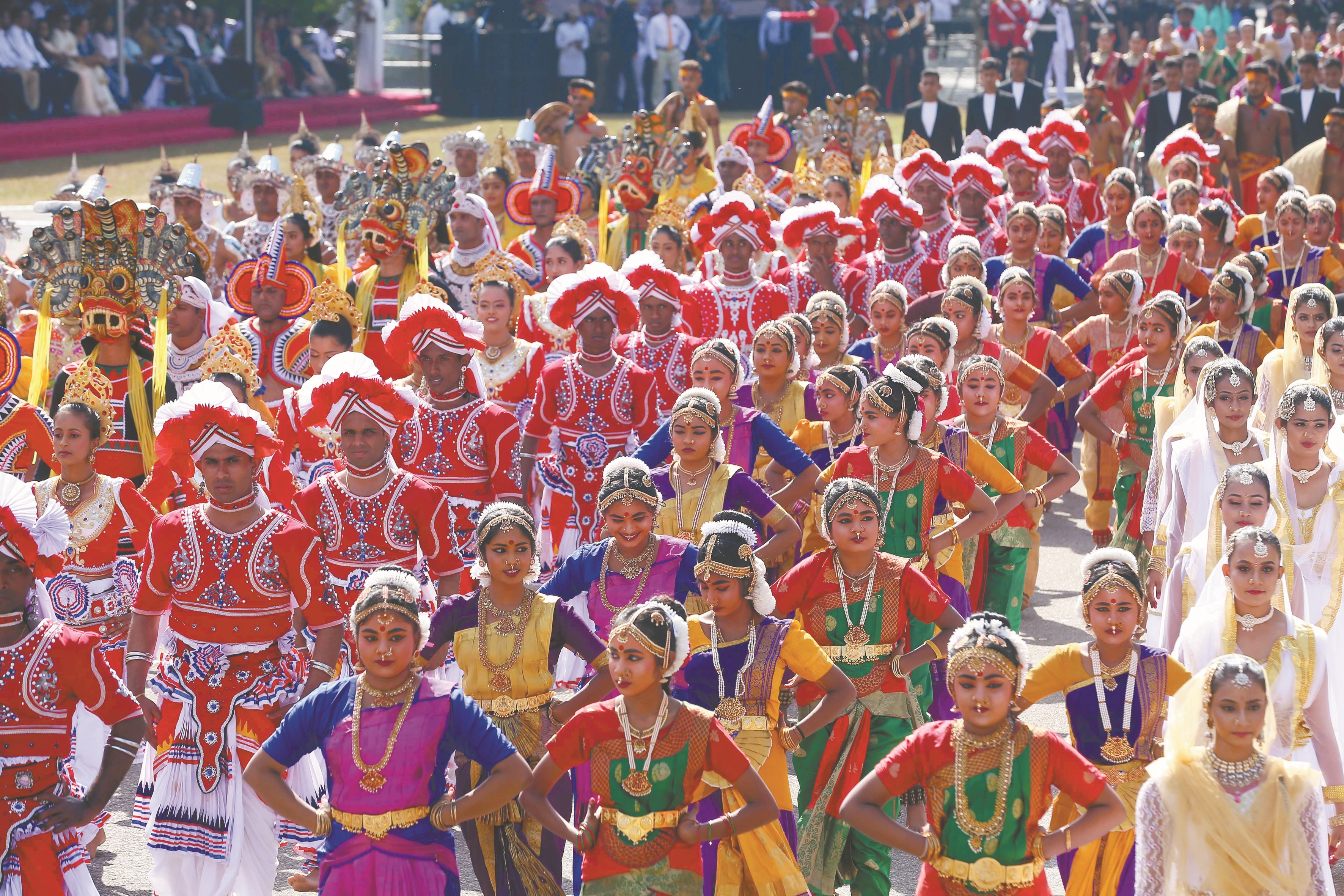 ?图为2月4日,在斯里兰卡首都科伦坡,人们参加独立日庆祝活动。