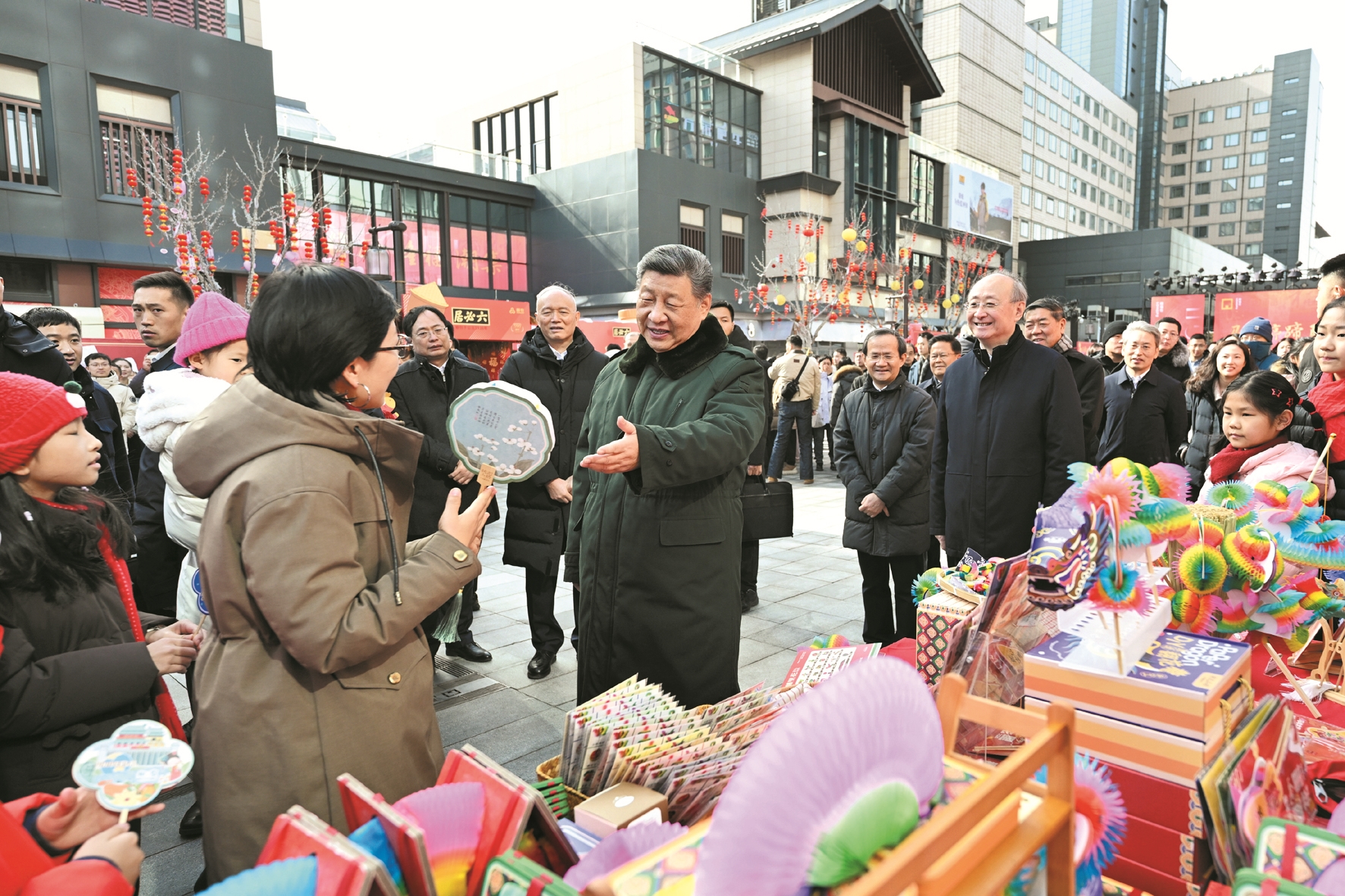 2月9日至10日,中共中央总书记、国家主席、中央军委主席习近平在北京考察并看望慰问基层干部群众。这是10日上午,习近平在东城区隆福寺街区新春市集考察时,同现场群众亲切交流。 新华社记者 燕 雁摄
