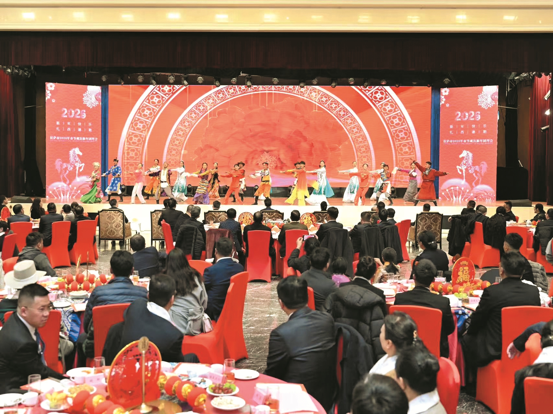 2月10日下午,拉萨市举行2026年春节藏历新年团拜会。这是团拜会现场。 拉萨融媒记者 玉珠多杰摄