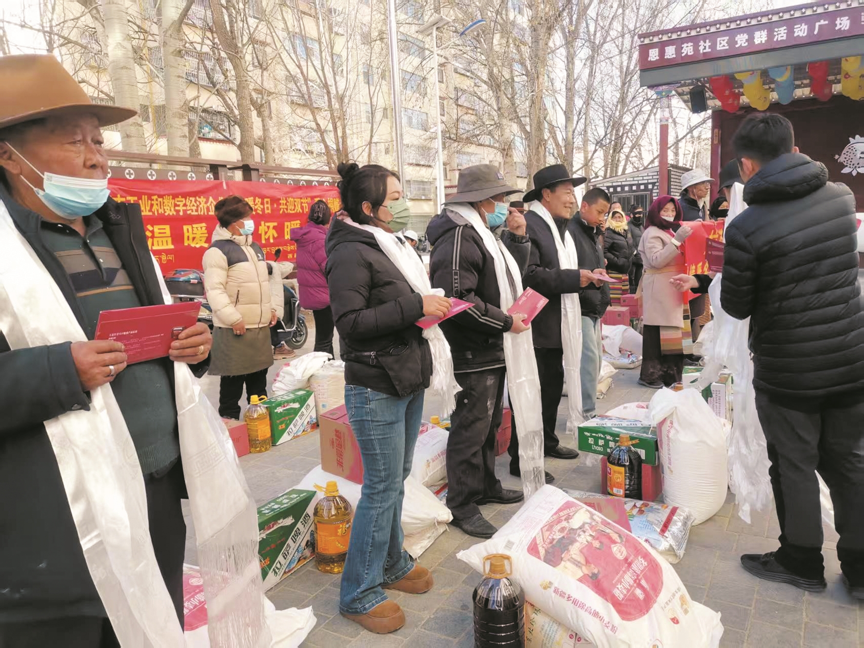 2月12日,拉萨市工业和数字经济企业开展“情暖冬日 共迎双节”爱心捐赠活动在恩惠苑社区党群活动广场举行。图为爱心捐赠活动现场。 拉萨融媒记者 赵 慧摄