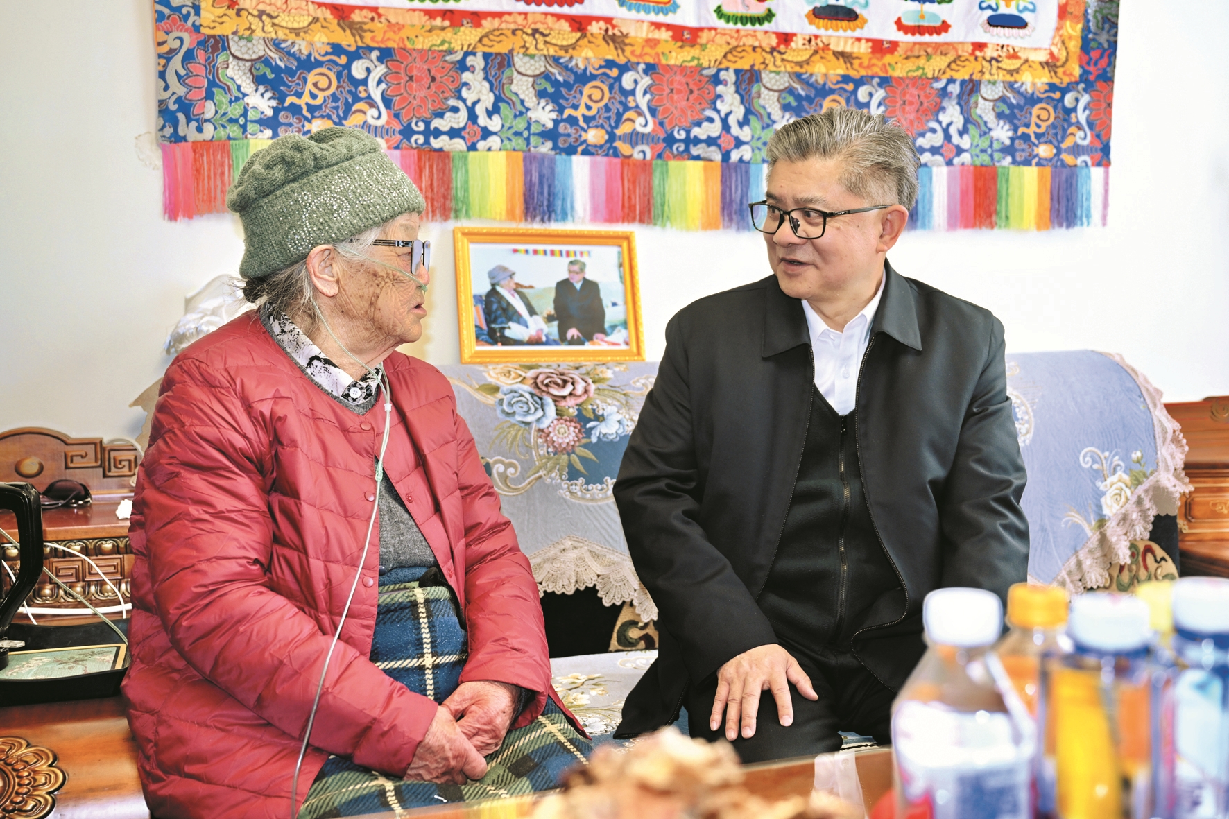 “老人家,我又来看您了!去年我们约好,过节时我一定再来看您。”来到十八军老战士才仁白姆家中,王强快步上前,紧紧握住老人双手亲切地说道。老人笑容满面,由衷感谢党和政府的挂念。交谈中,王强细心询问老人的日常起居、健康状况和家庭情况,简要介绍了拉萨的新变化新成就,并反复嘱咐她要保重身体,安享幸福晚年。王强指出,十八军老战士是西藏革命和建设事业的开拓者、奉献者和保卫者,更是老西藏精神、“两路”精神的创造者、实践者,是党和国家的宝贵财富。他要求相关部门要用心用情用力做好服务保障工作,做到思想上关心、生活上照顾、精神上关怀,让老战士晚年生活更加舒心、安心、顺心。