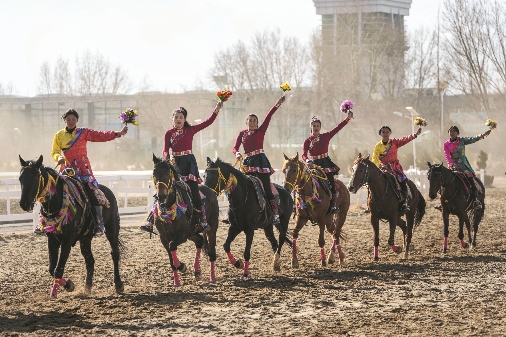 2月20日是马年大年初四,藏历火马年大年初三,拉萨市北郊赛马场举行了民族传统马术表演暨民族赛马活动。马术队员策马扬鞭,一展技艺,以精彩的马术表演献礼马年新春。