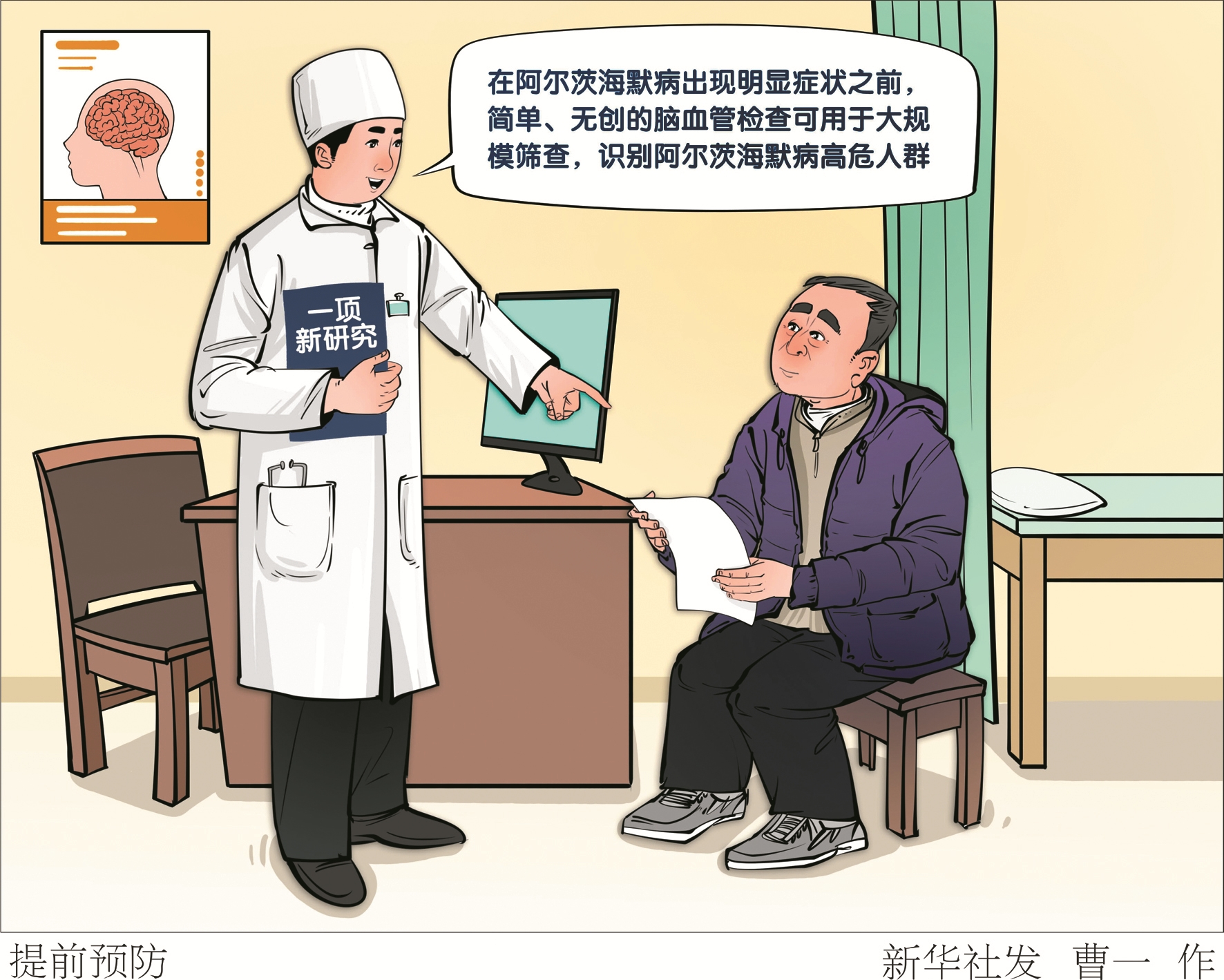 美国一项新研究显示,在阿尔茨海默病出现明显症状之前,患者的脑血管功能就已经下降,简单、无创的脑血管检查可用于大规模筛查,识别阿尔茨海默病高危人群。 (新华社发)