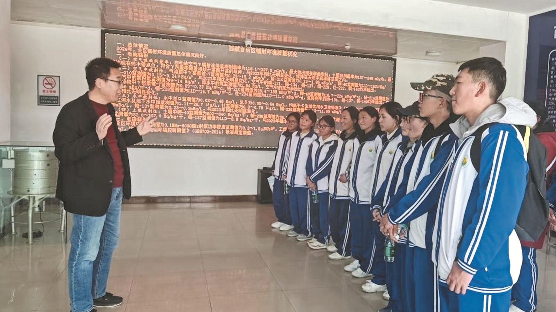 走出课堂,师生们来到自治区辐射环境监督站的科普基地开展研学活动,大家近距离观摩环保设施、学习辐射监测技术,让书本上的理论知识化作直观鲜活的实践体验。同学们在实地探访中,亲眼见证了科技为绿水青山保驾护航的实际成效,也深刻感受到生态保护工作背后的严谨与坚守。